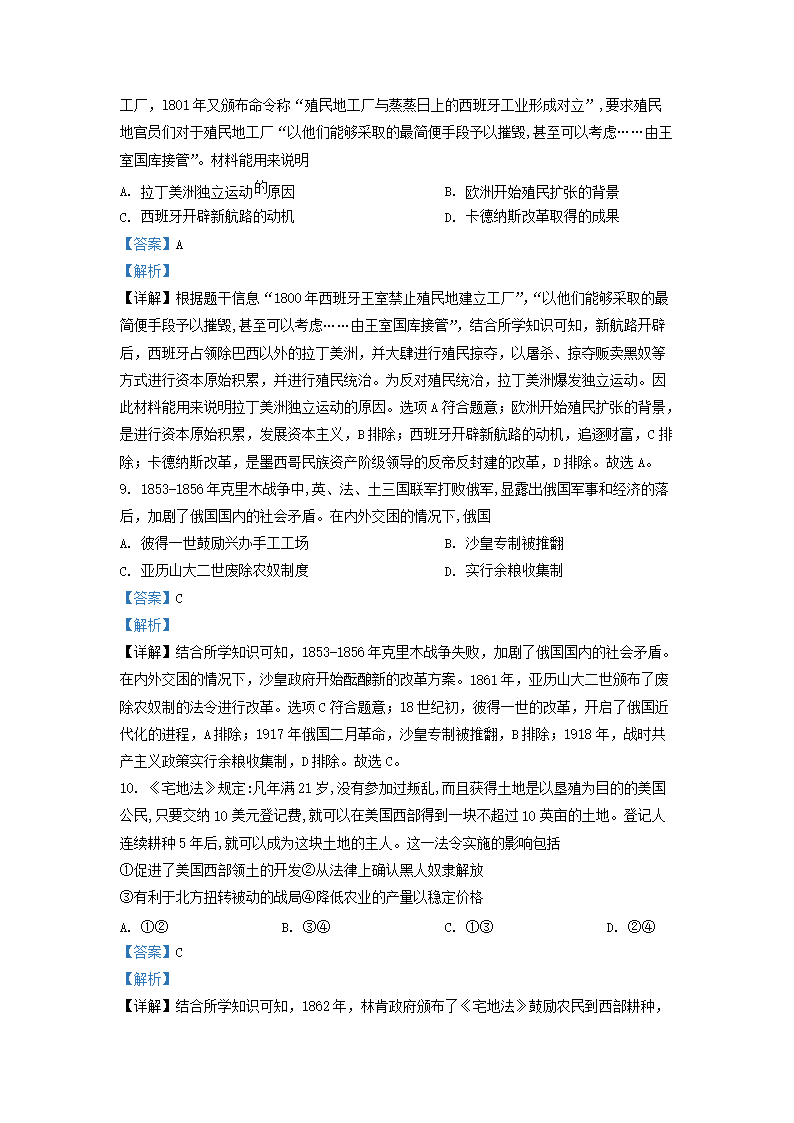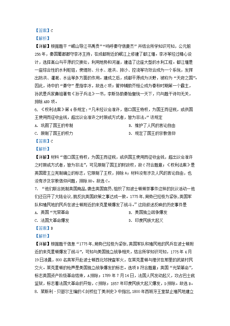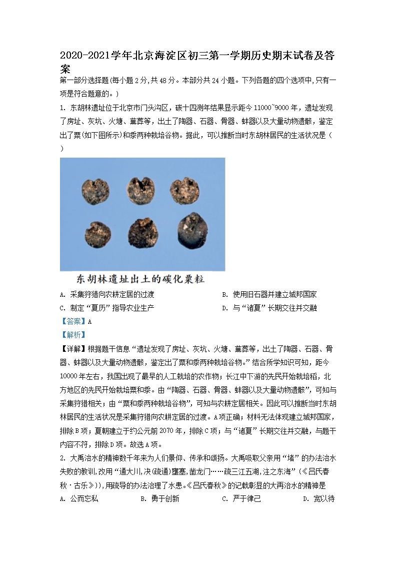 2020-2021学年北京海淀区初三第一学期历史期末试卷及答案(Word版)07-19