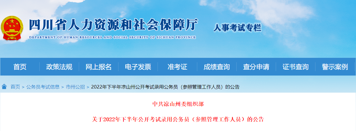原文标题:关于凉山州2022年下半年公开考试录用公务员(参照管理工作人员)的公告