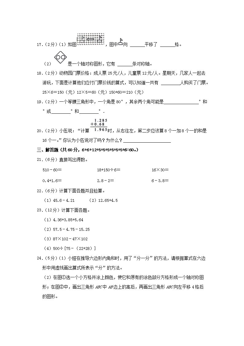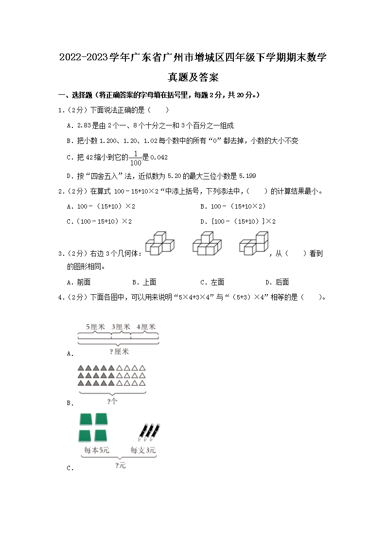 2022-2023学年广东省广州市增城区四年级下学期期末数学真题及答案(Word版)10-20