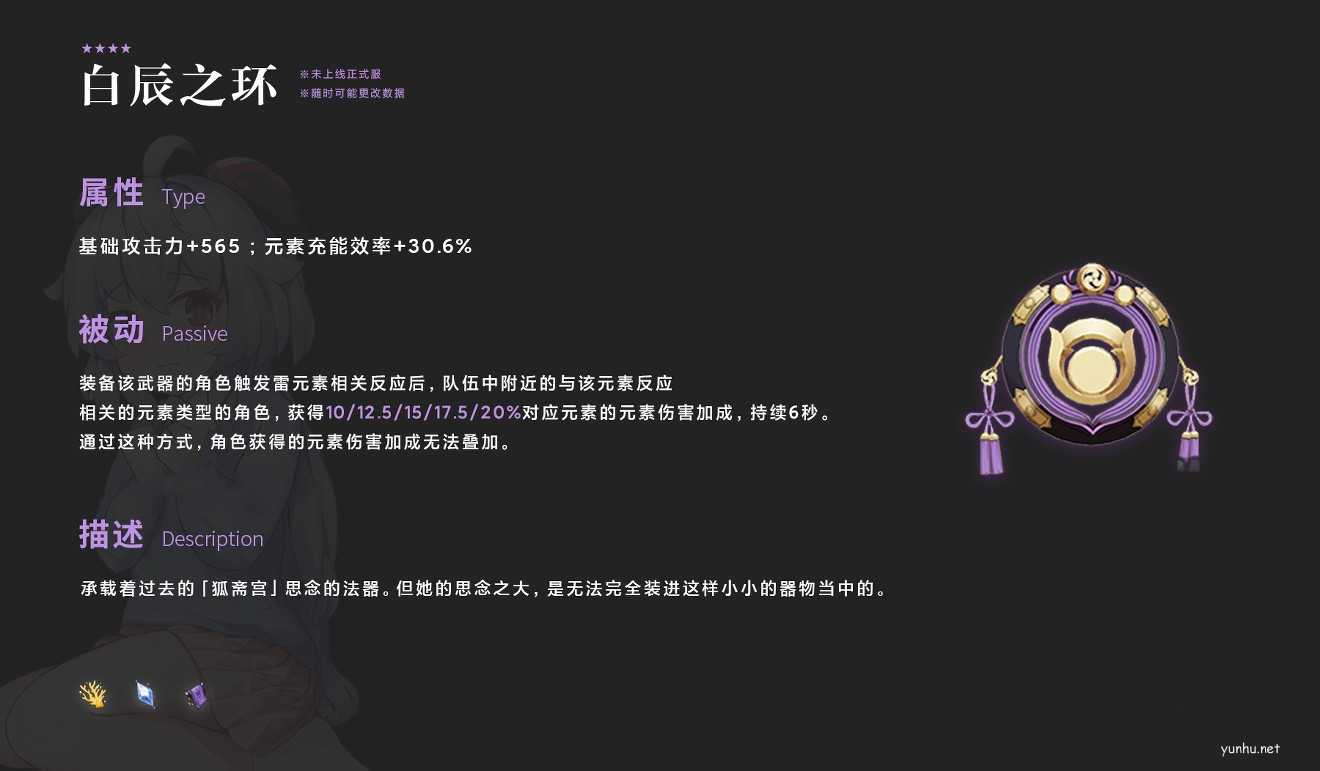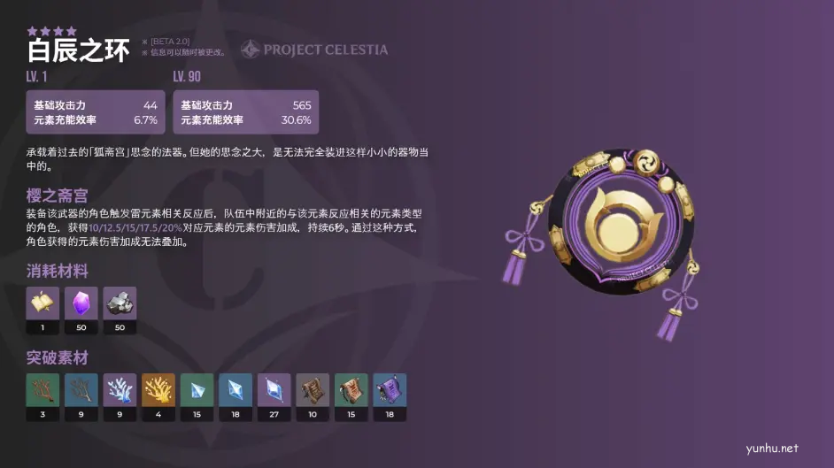 原神白辰之环怎么制作?白辰之环制作是什么?白辰之环是原神的新武器,作为4星法器。拥有565基础攻击力,30.6%元素充能,被动樱之斋宫:角色触发雷元素相关反应后,对应反应参与元素的角色将获得元素增伤。那么该怎么制作呢,接下来小编就为大家带来原神白辰之环制作方法吧。