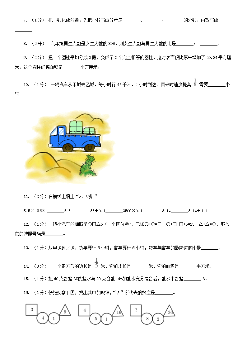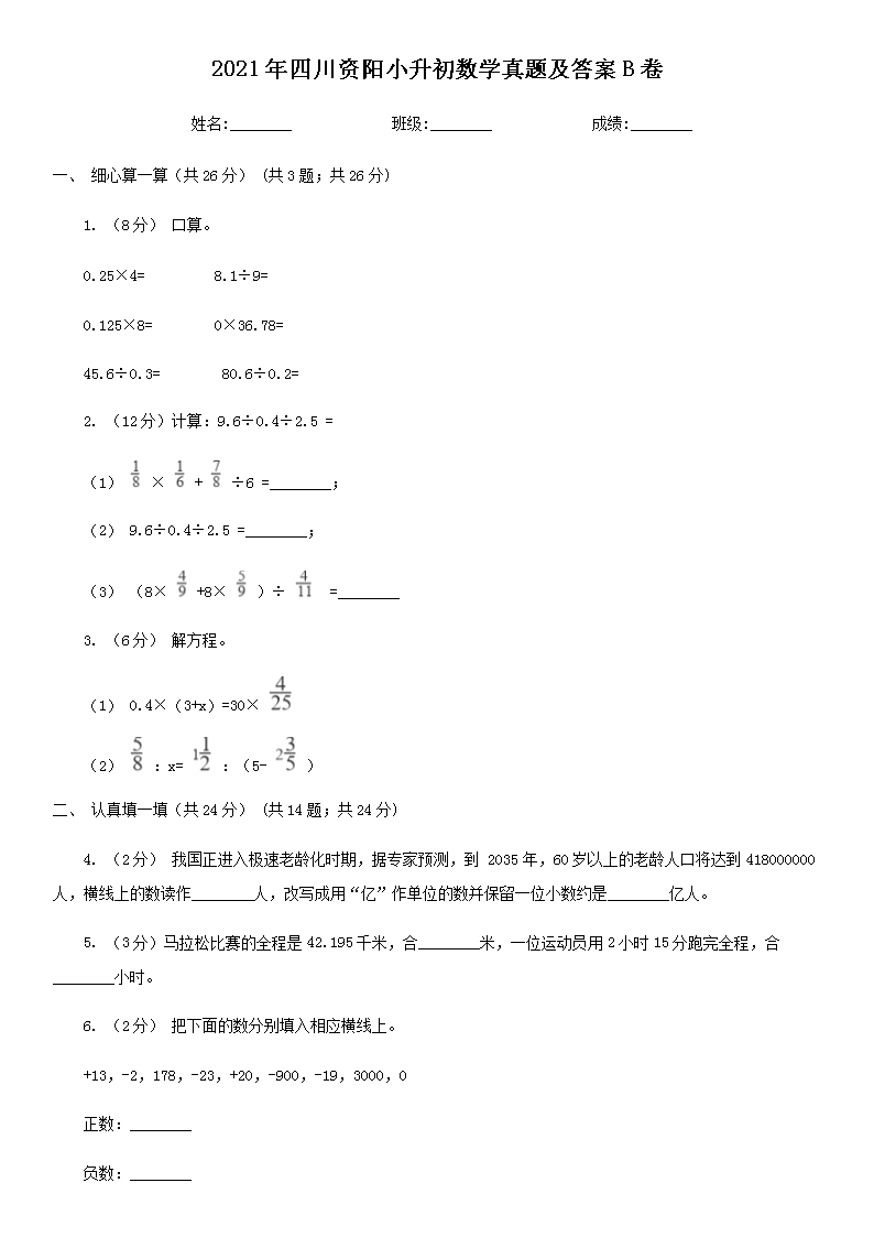 2021年四川资阳小升初数学真题及答案B卷(Word版)05-29