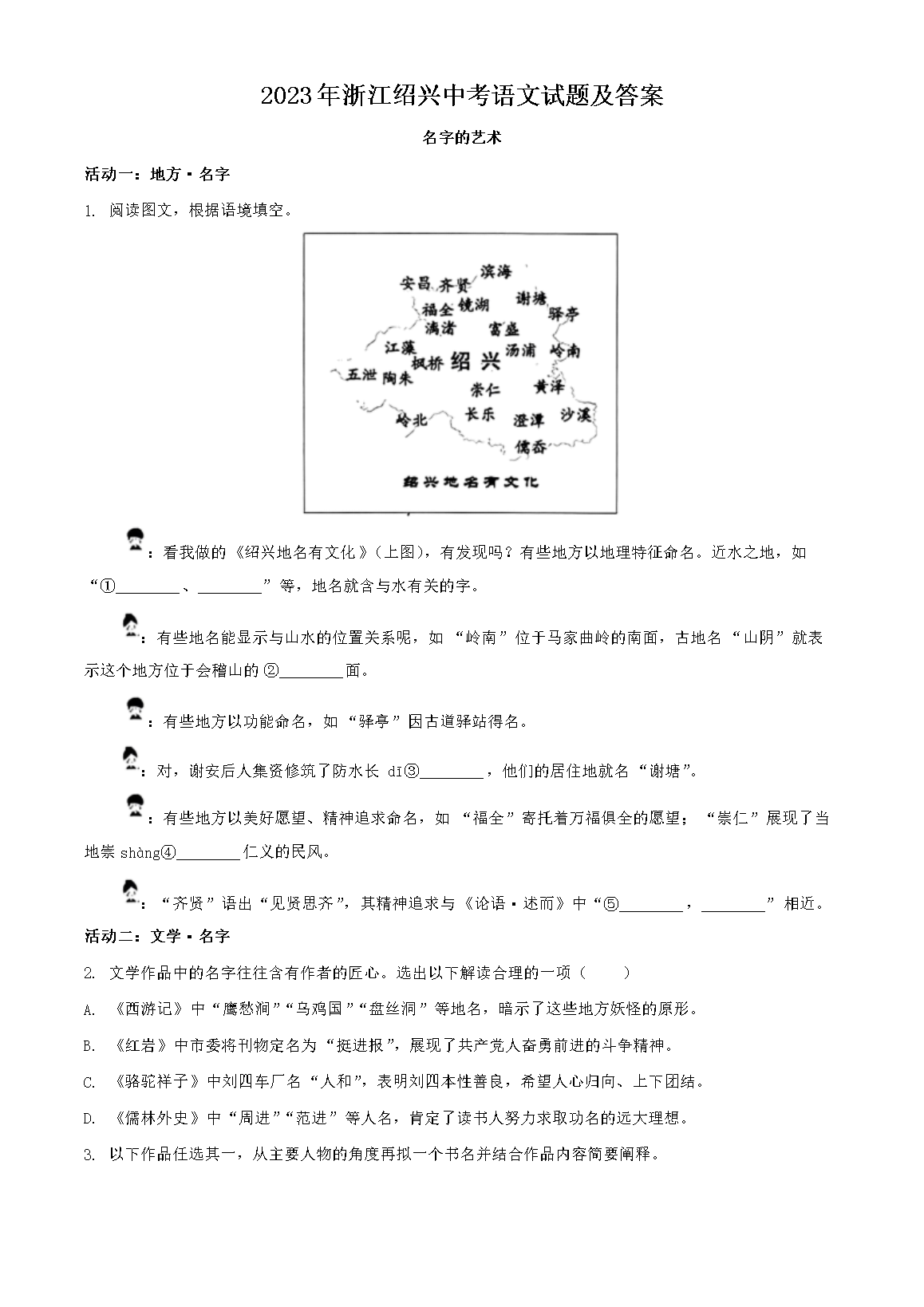 2023年浙江绍兴中考语文试题及答案(Word版)07-18