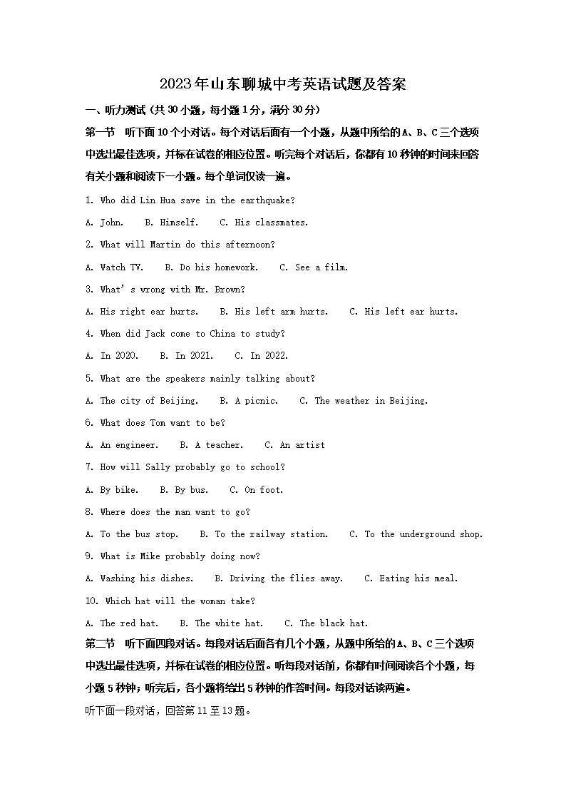 2023年山东聊城中考英语试题及答案(Word版)08-02