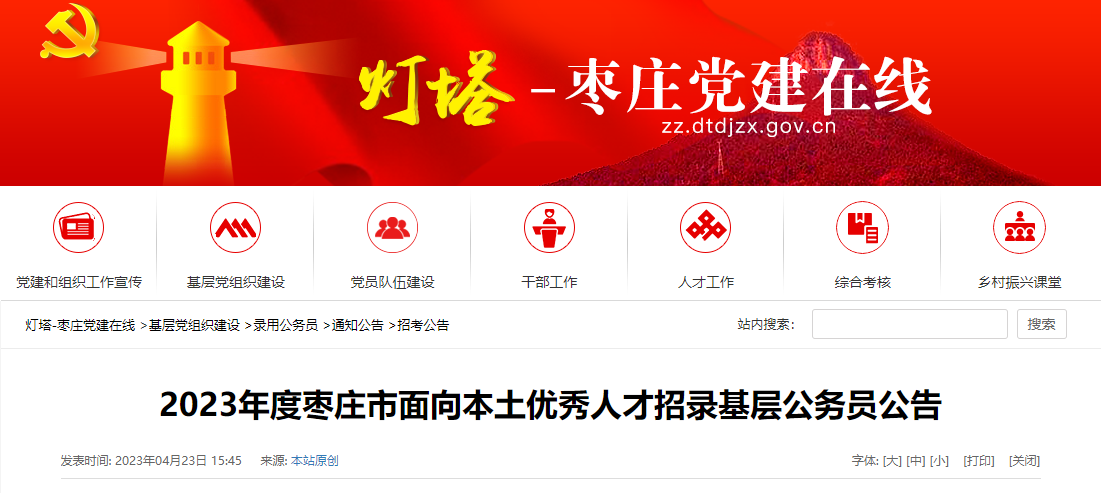 原文标题:2023年度枣庄市面向本土优秀人才招录基层公务员公告