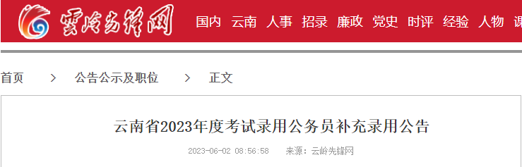 原文标题:云南省2023年度考试录用公务员补充录用公告