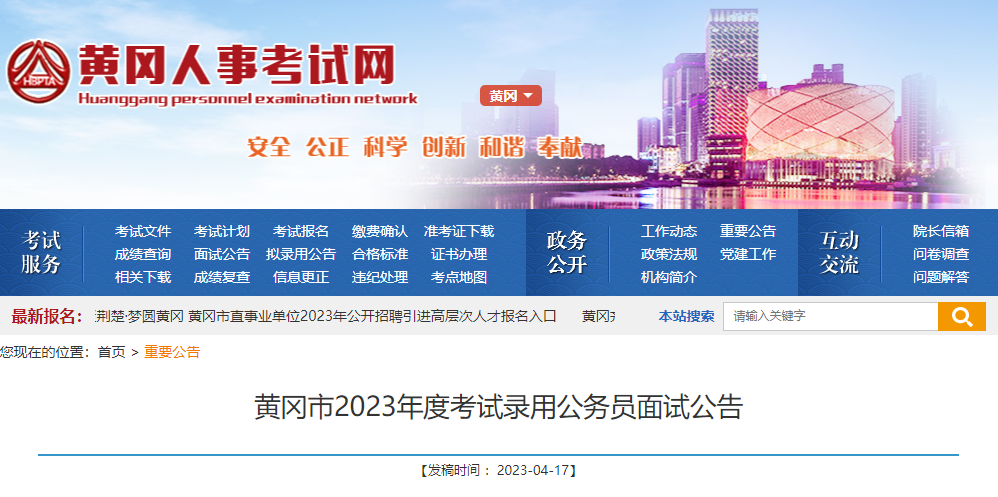 根据《湖北省2023年度省市县乡考试录用公务员面试组织工作方案》等要求,现将黄冈市2023年度考试录用公务员面试工作有关事项公告如下。