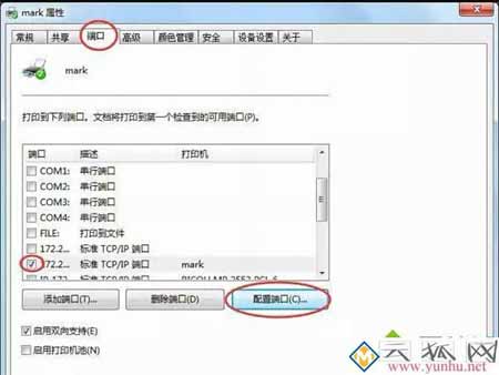 6、当然在打印机属性设置窗口也可以进行添加端口、删除端口等操作。