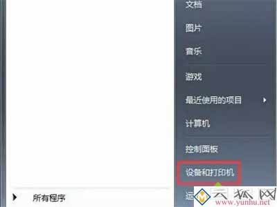 1、打开开始菜单点击【设备和打印机】,或者打开【控制面板】点击【设备和打印机】。