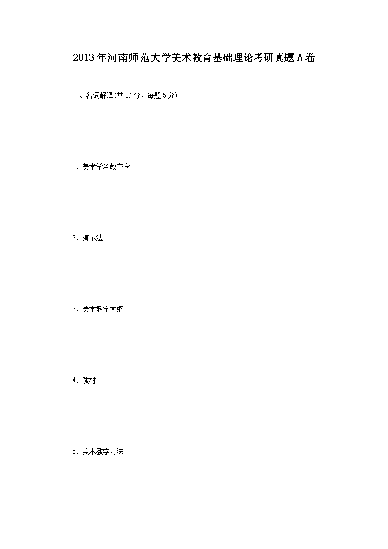 2013年河南师范大学美术教育基础理论考研真题A卷(Word版)06-15