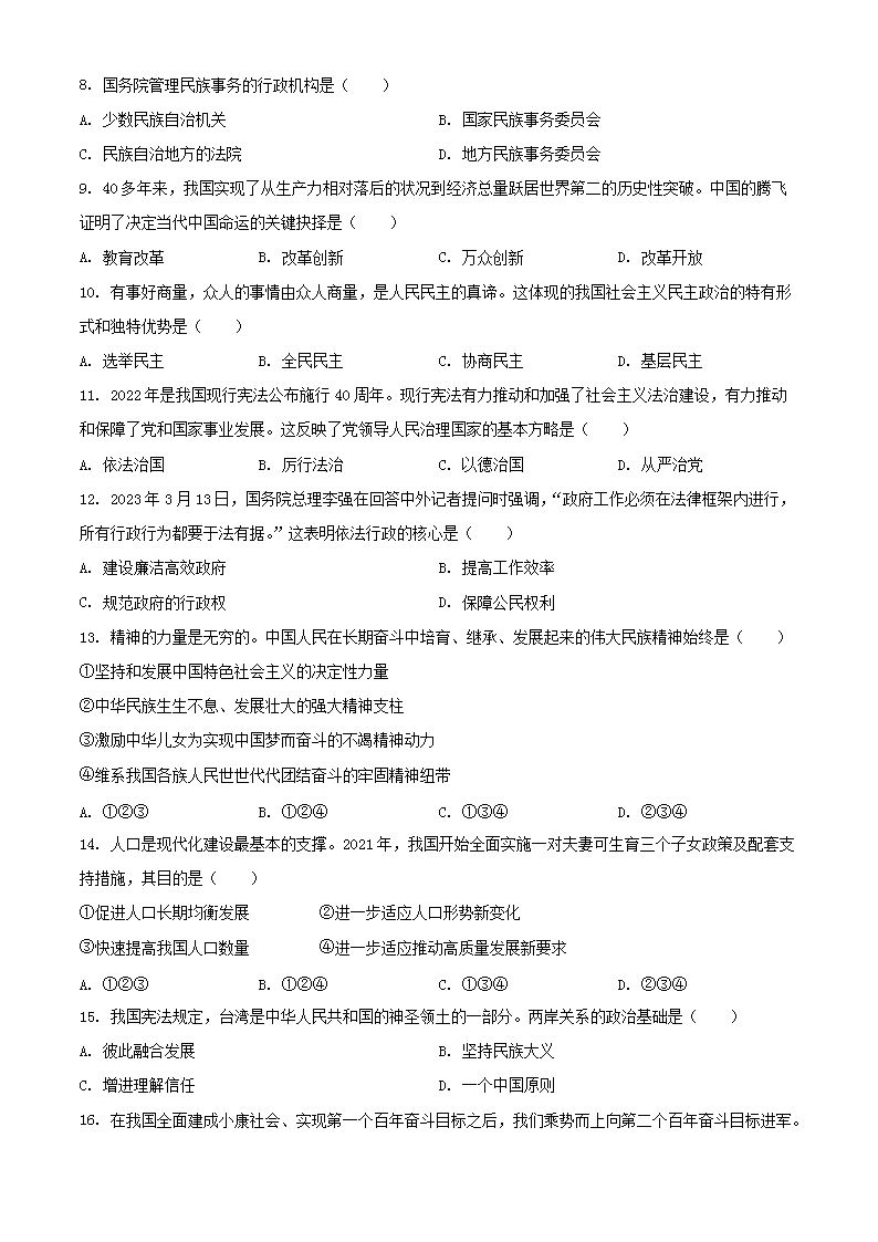 2023年辽宁葫芦岛中考道德与法治真题及答案(Word版)08-15