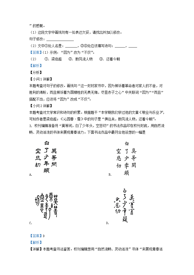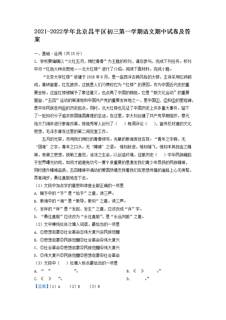2021-2022学年北京昌平区初三第一学期语文期中试卷及答案(Word版)06-28