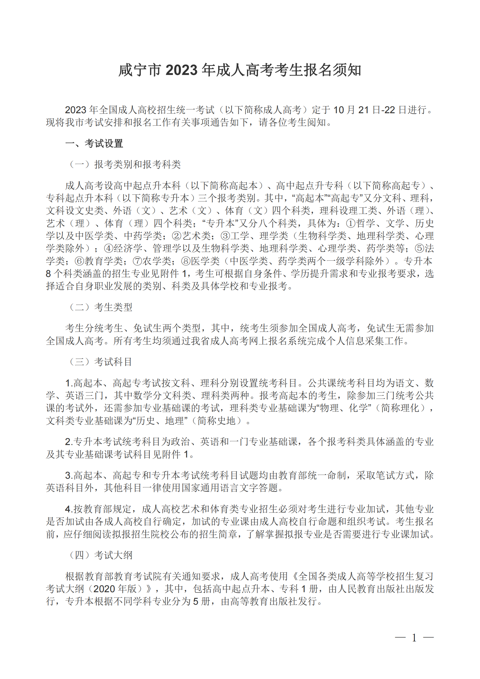 【#成考# 导语】®文档大全网成人高考频道从咸宁市教育局了解到,陕西咸宁市2023年成人高考考生报名须知已公布,考试时间安排在10月21日至22日。具体如下: