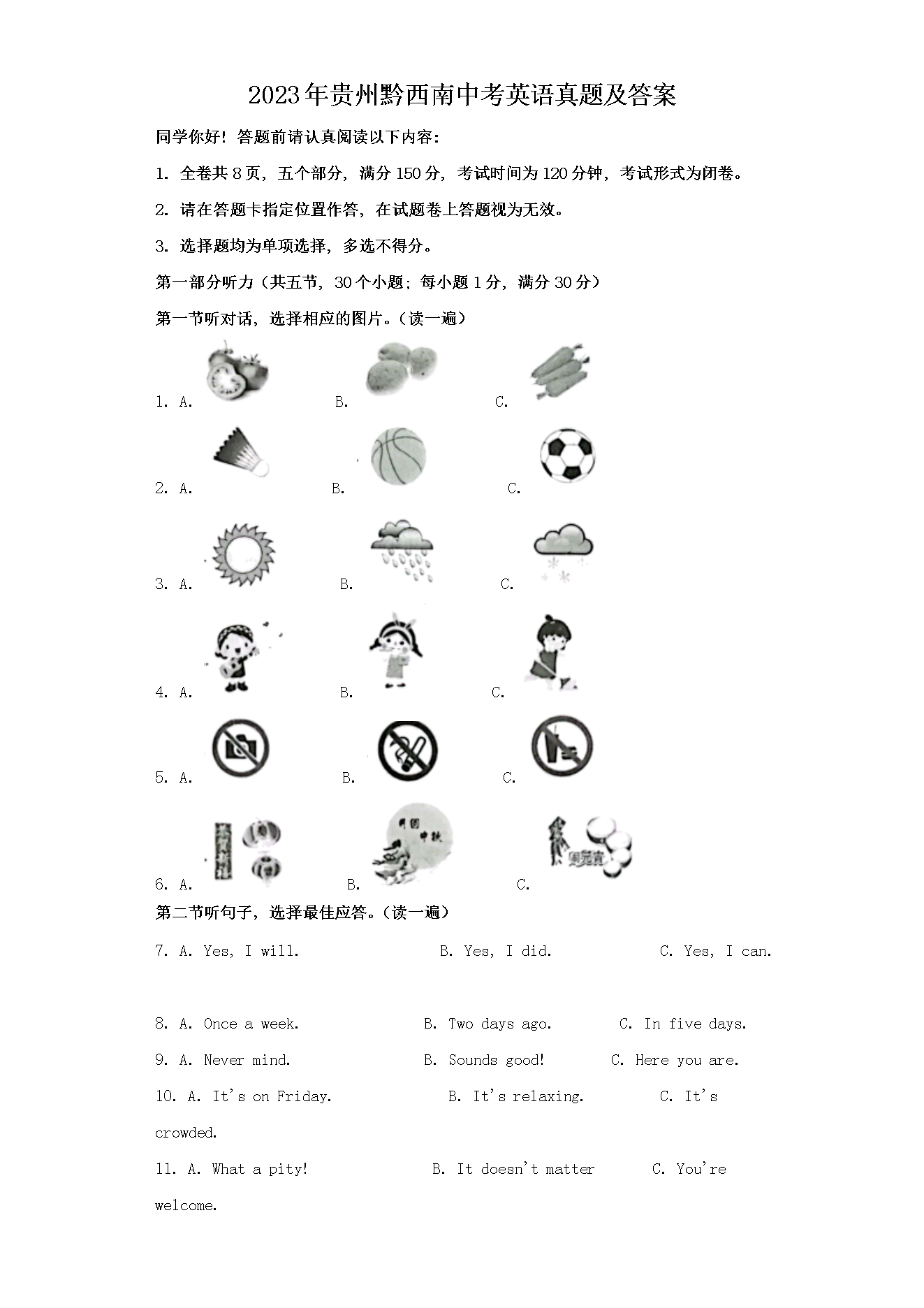 2023年贵州黔西南中考英语真题及答案(Word版)07-17