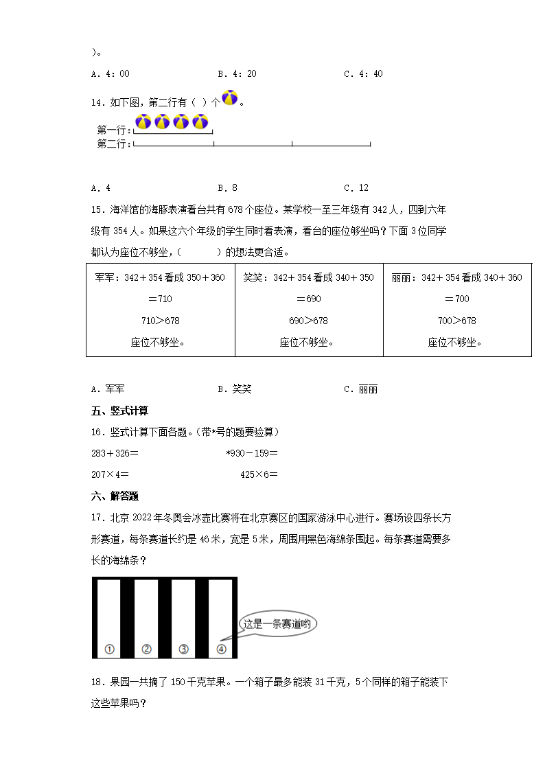 2021-2022学年北京市东城区小学三年级上册期末数学试卷及答案(Word版)06-15