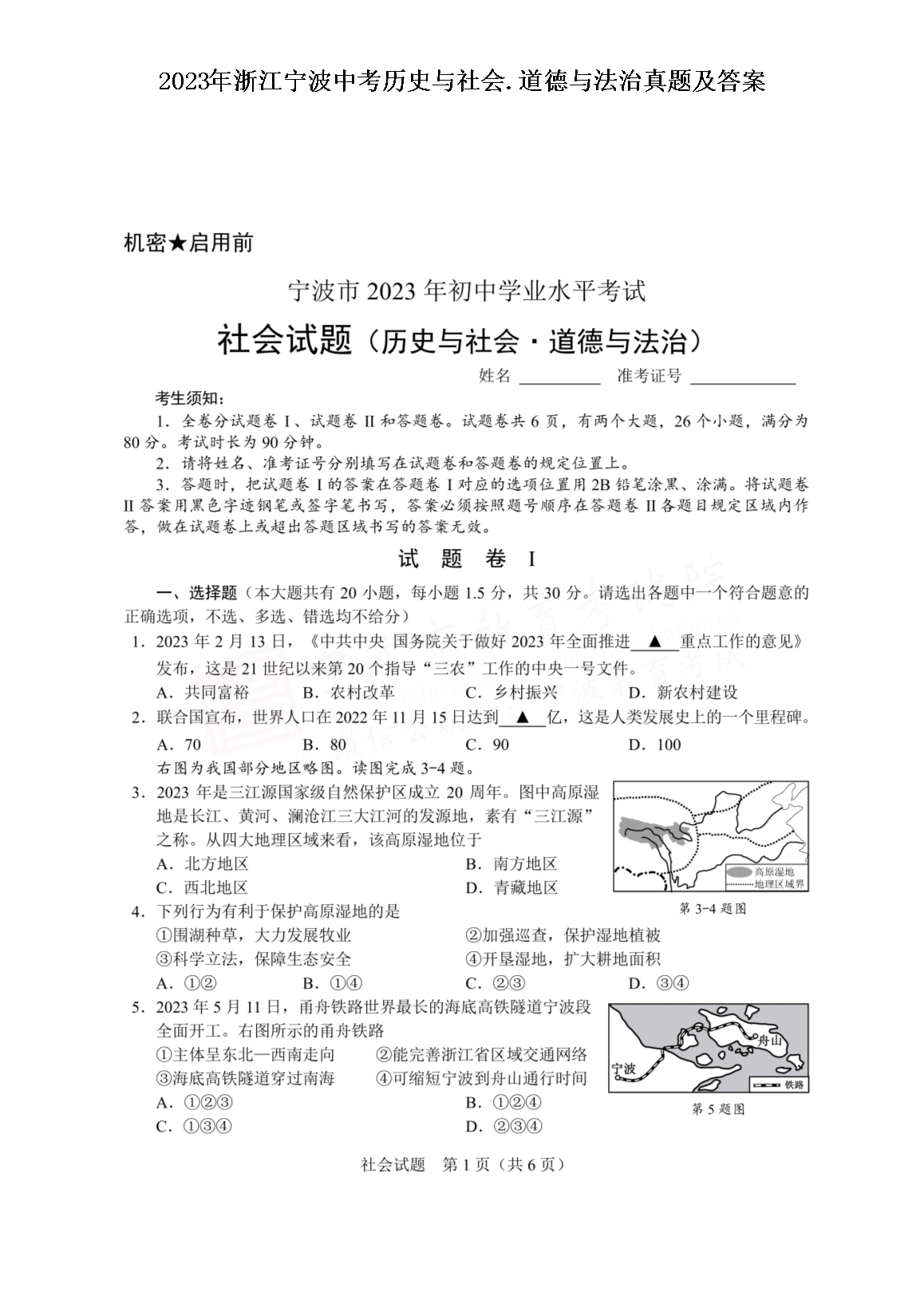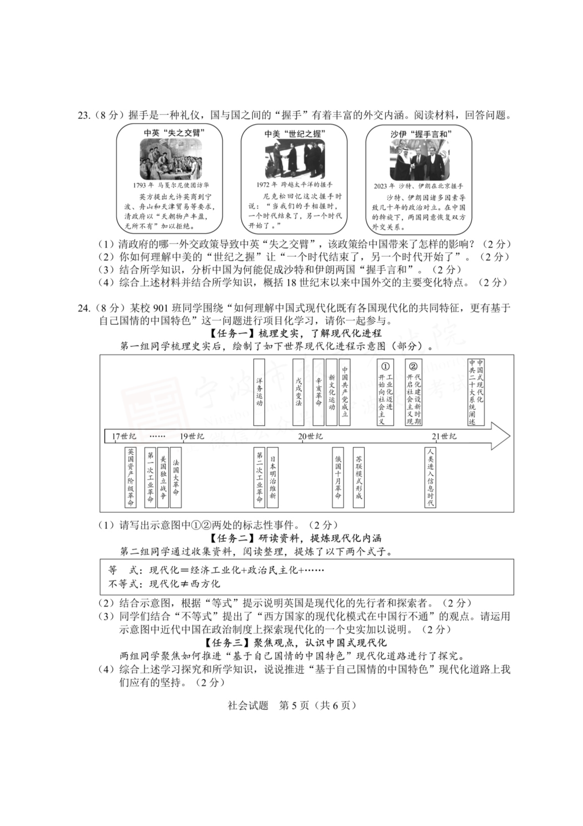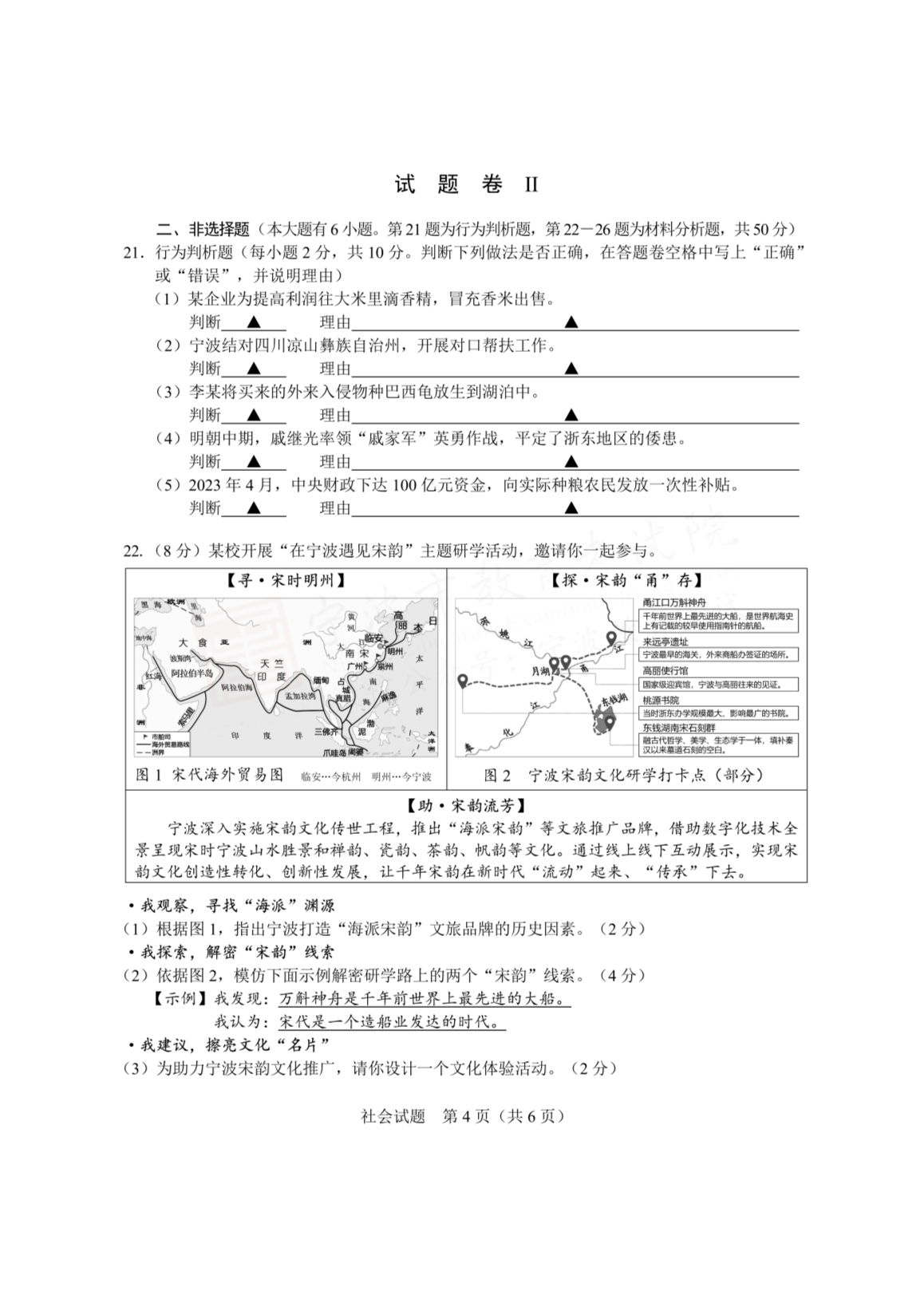 2023年浙江宁波中考历史与社会.道德与法治真题及答案(图片版)06-20