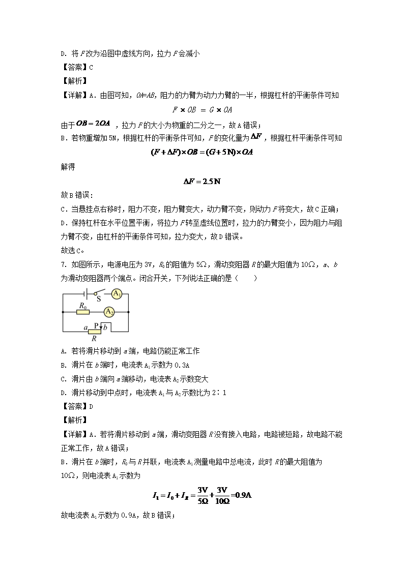 2019年重庆南岸中考物理试题11-18