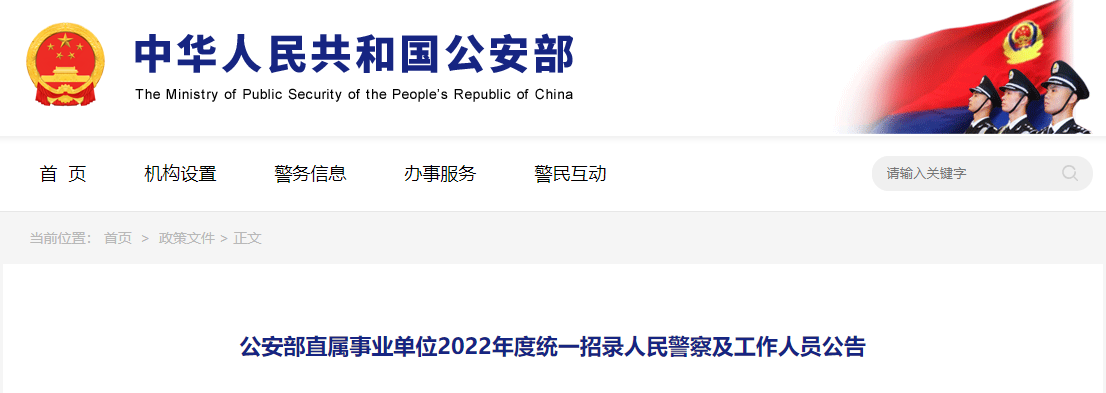 【#招警考试# 导语】©文档大全网温馨提示,《2022年公安部直属事业单位统一招录人民警察及工作人员公告》现已公布!从公告中获悉,报名时间:2021年12月15日-19日,2022年公安部直属事业单位招录人民警察报考条件如下: