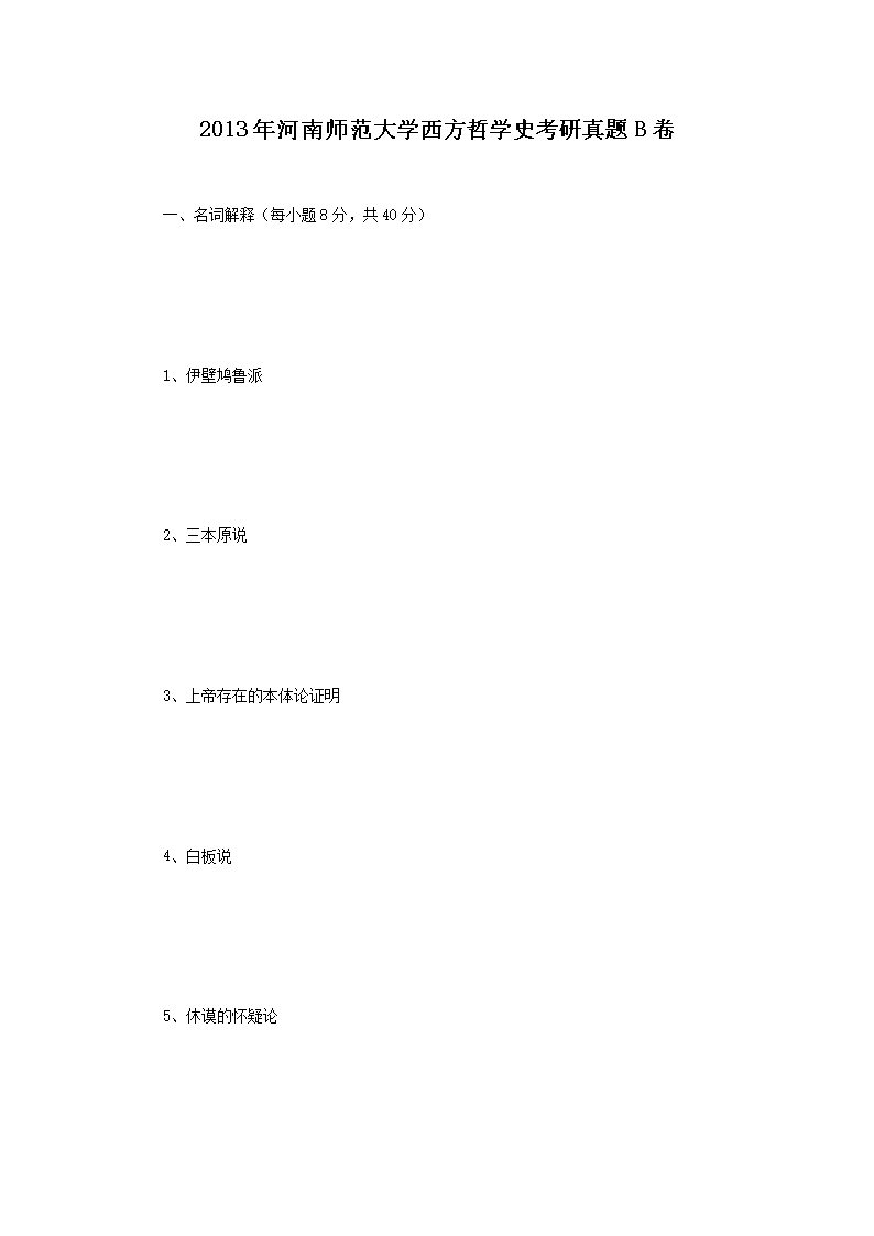 2013年河南师范大学西方哲学史考研真题B卷(Word版)06-14