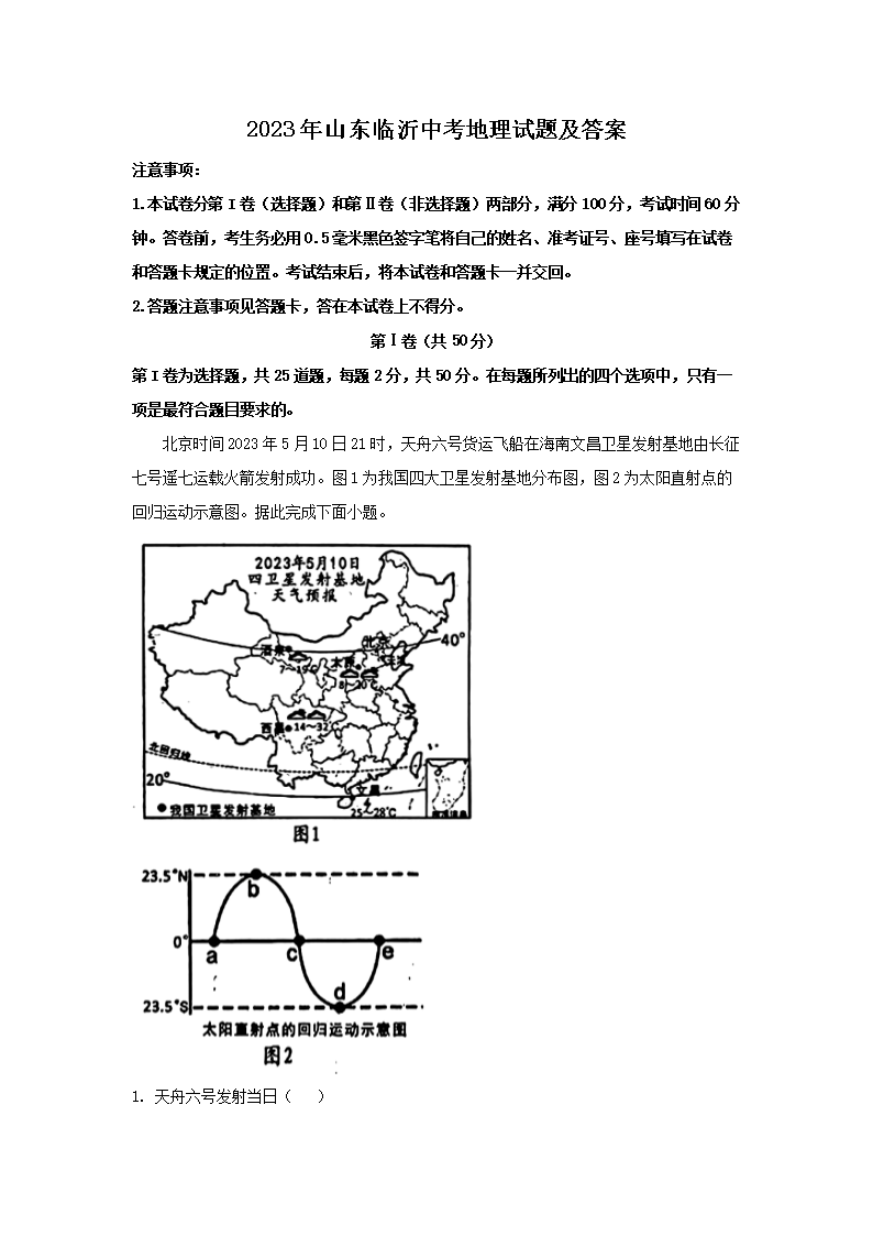 2023年山东临沂中考地理试题及答案(Word版)06-22