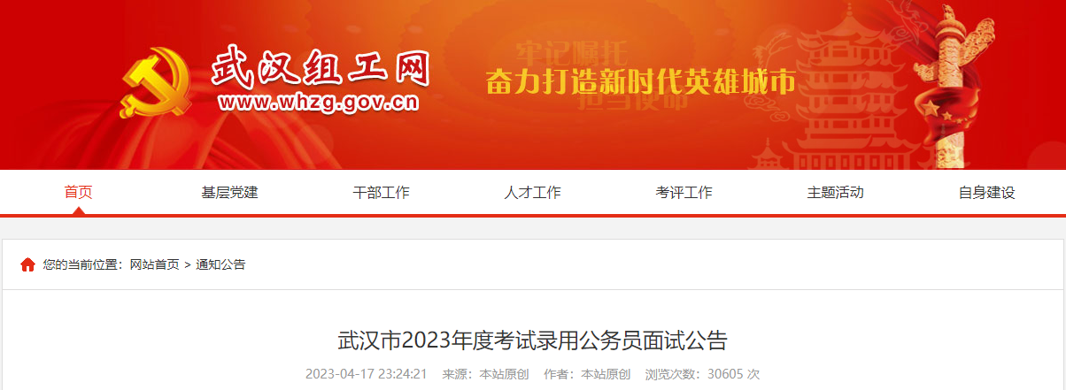 原文标题:武汉市2023年度考试录用公务员面试公告