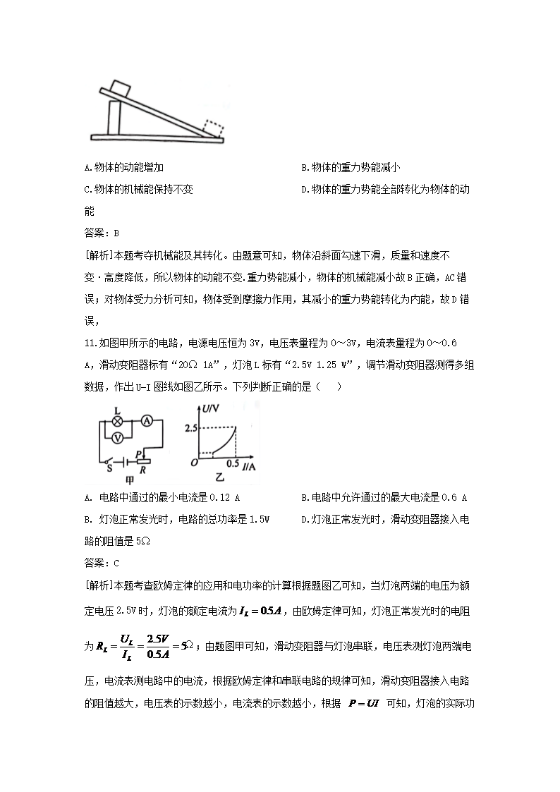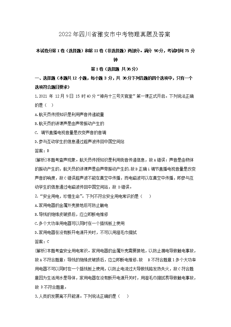 【文档预览】 文档大全网整理发布2022年四川省雅安市中考物理真题及答案(Word版),前五页预览如下: