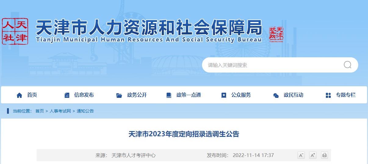 2023年天津定向选调生考试时间:2022年12月10日11-17