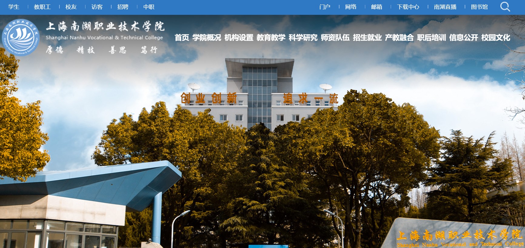南湖职院诞生于国家大力发展职业教育和上海深化教育综改的新时代背景下,坚持社会主义办学方向和党的教育方针,秉持“创业创新,追求一流”的办学精神,确立“厚德精技善思笃行”的校训,培养德智体美劳全面发展的“红色基因+文化素质+专业技能”的高素质技术技能人才。