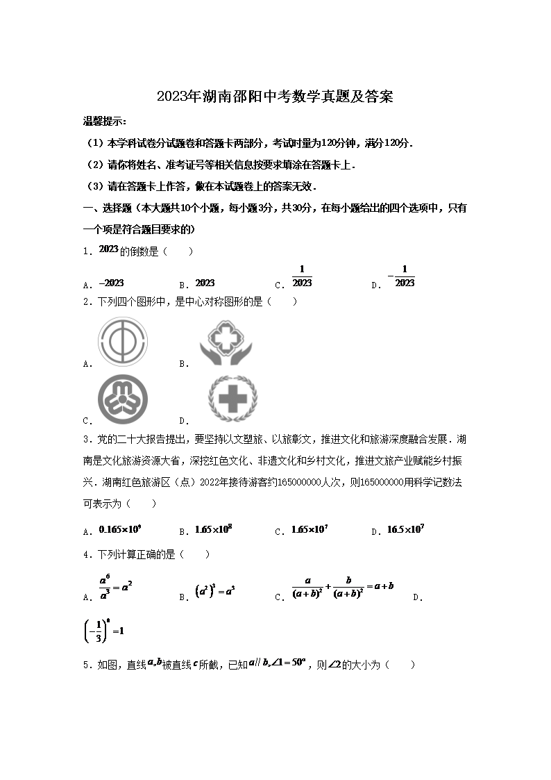 【文档预览】 文档大全网整理发布2023年湖南邵阳中考数学真题及答案(Word版),前五页预览如下: