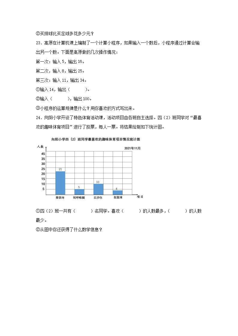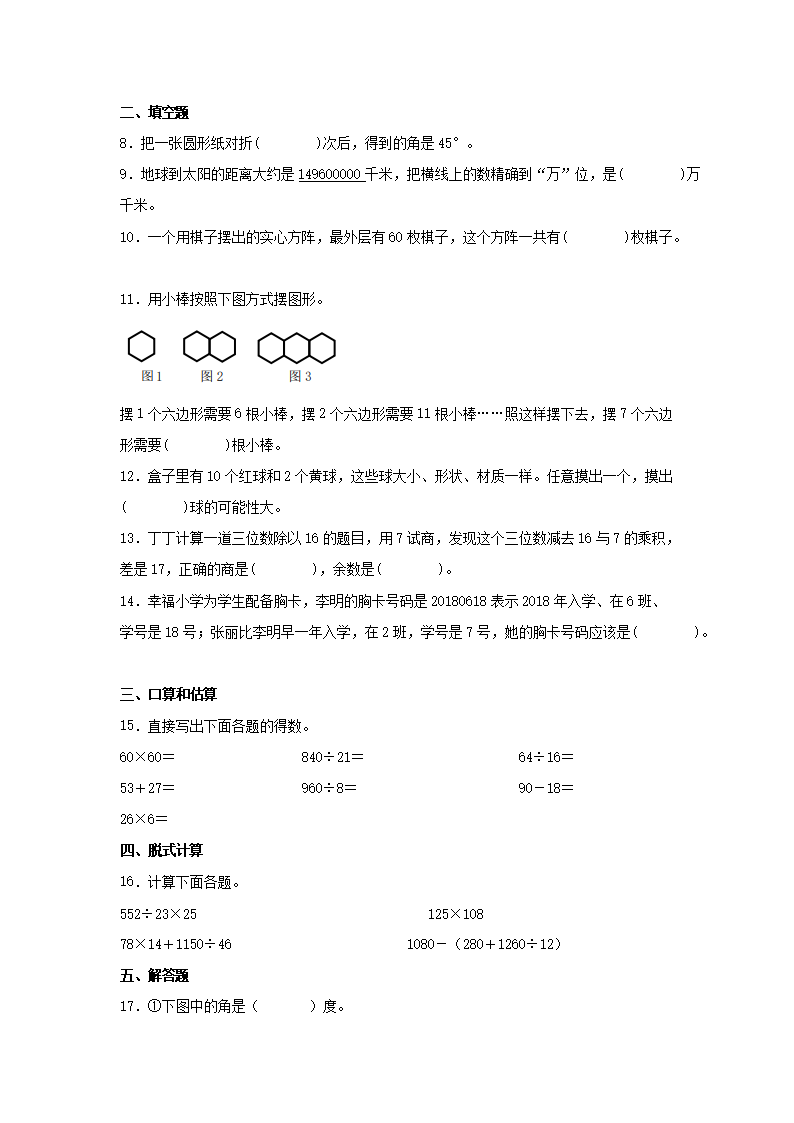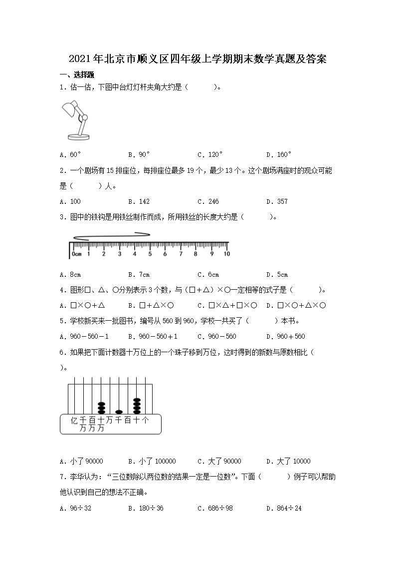 2021年北京市顺义区四年级上学期期末数学真题及答案(Word版)06-20