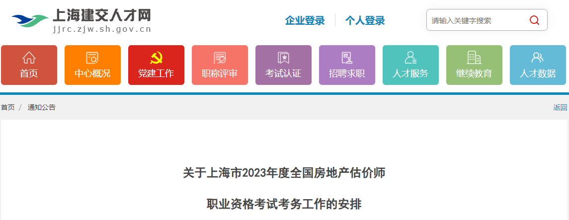 【#房地产评估师# 导语】2023年上海房地产估价师报名时间什么时候,报名入口在哪?©文档大全网从上海建交人才网获悉,根据《2023年上海房地产估价师职业资格考试报名工作通知》中获悉,报考人员请于10月8日00:00至10月13日期间通过“房地产估价师职业资格考试报名系统”进行网上报名,详情如下: