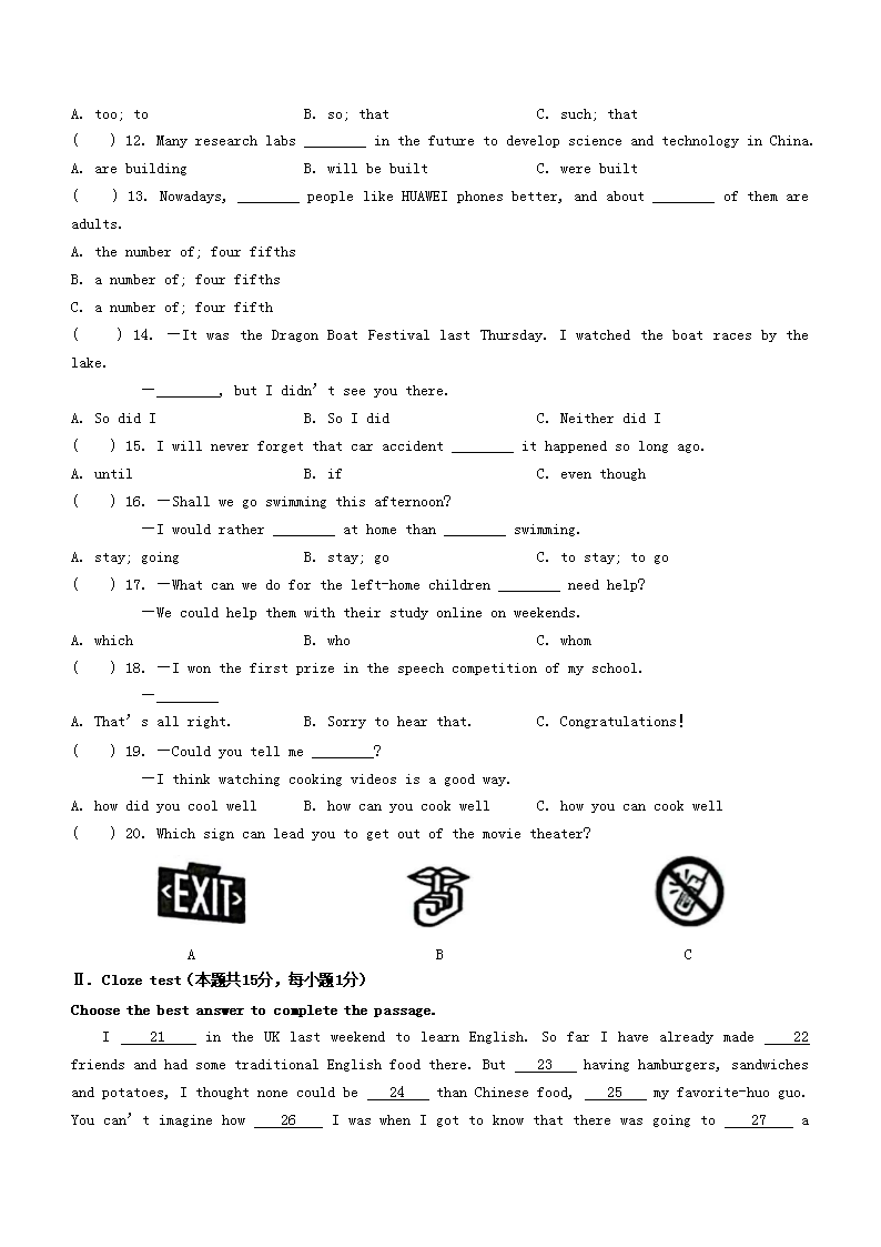 2023年黑龙江佳木斯中考英语真题及答案(Word版)06-30