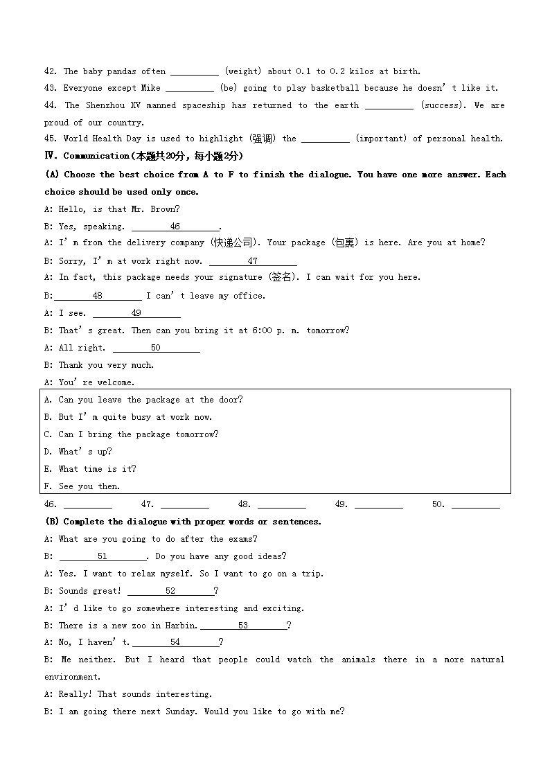 【文档预览】 文档大全网整理发布2023年黑龙江佳木斯中考英语真题及答案(Word版),前五页预览如下: