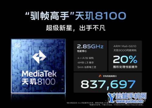 性能方面,vivo S15 Pro搭载联发科天玑8100,该芯片采用5nm工艺制程,相比上一代性能提升20%,安兔兔跑分高达83万。此外,vivo S15 Pro还搭载独显芯片 Pro,带来了三大提升,分别是普通游戏变高帧、高帧游戏更稳定、高帧稳定更省电,无论是游戏还是日常使用都能轻松应对。