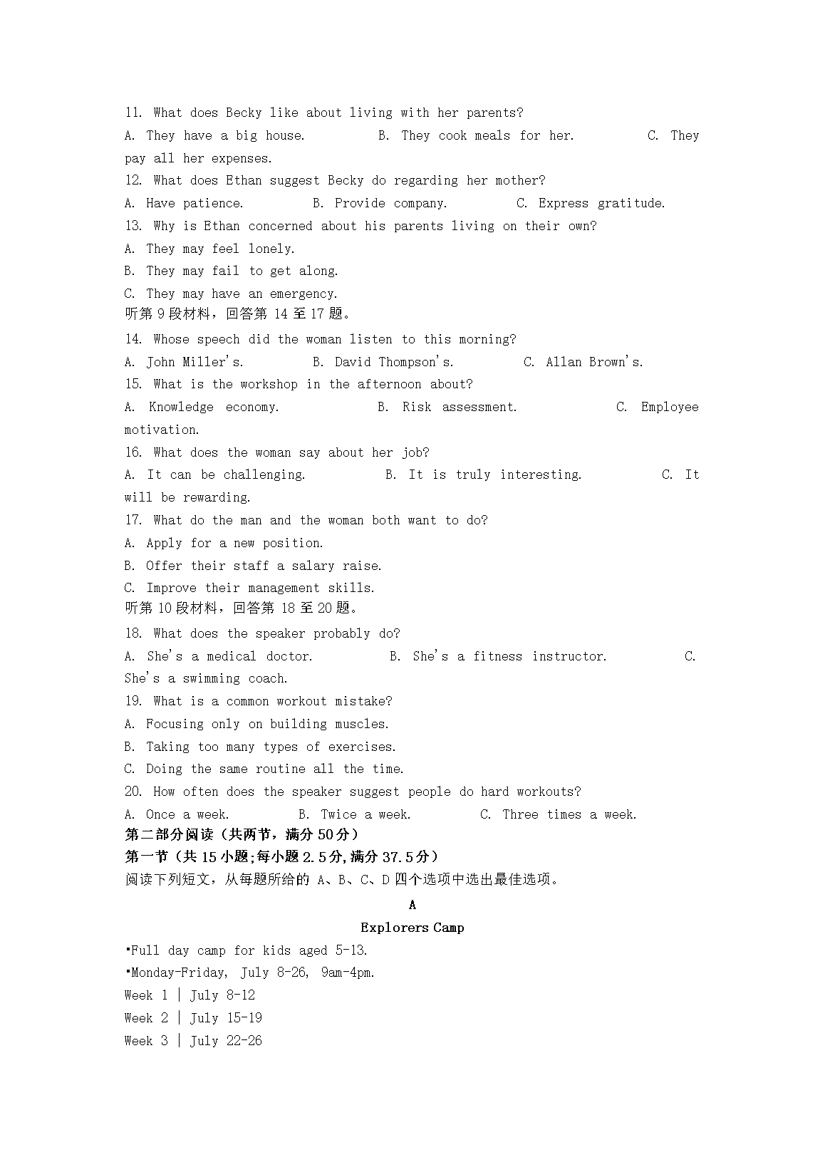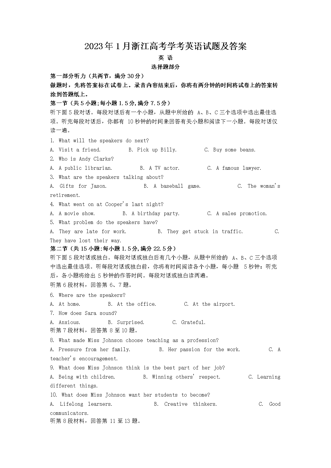 【文档预览】 文档大全网整理发布2023年1月浙江高考学考英语试题及答案(Word版),前五页预览如下: