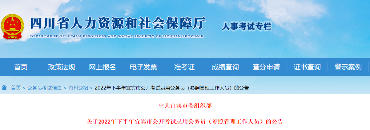 原文标题:中共巴中市委组织部关于2022下半年下半年巴中市公开考试录用公务员(参照管理工作人员)的公告