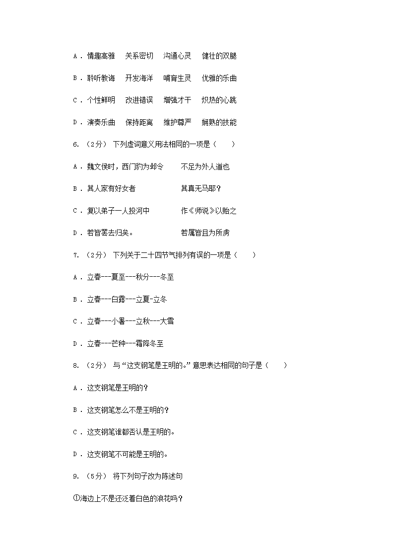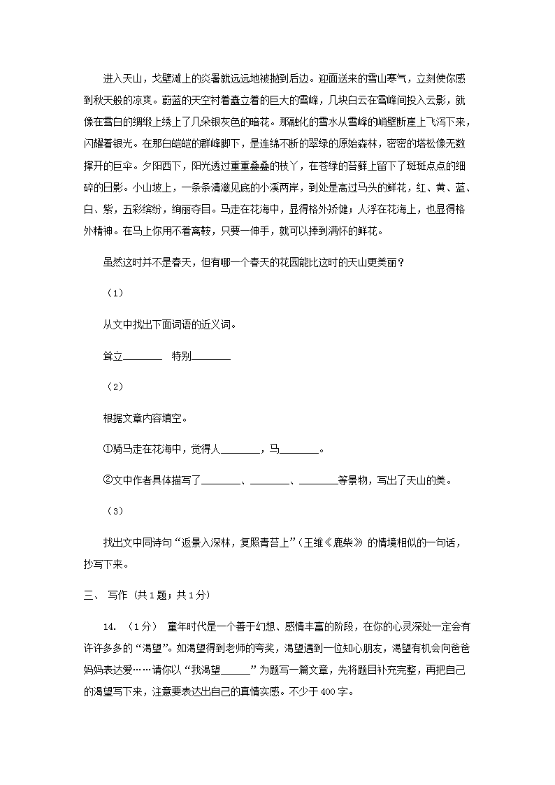 2021年四川南充小升初语文真题及答案I卷(Word版)08-31