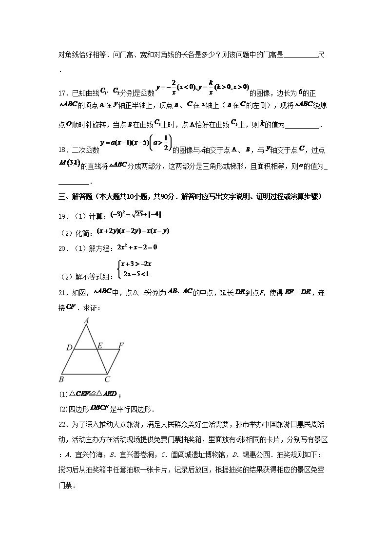 2023年江苏无锡中考数学真题及答案(Word版)07-15
