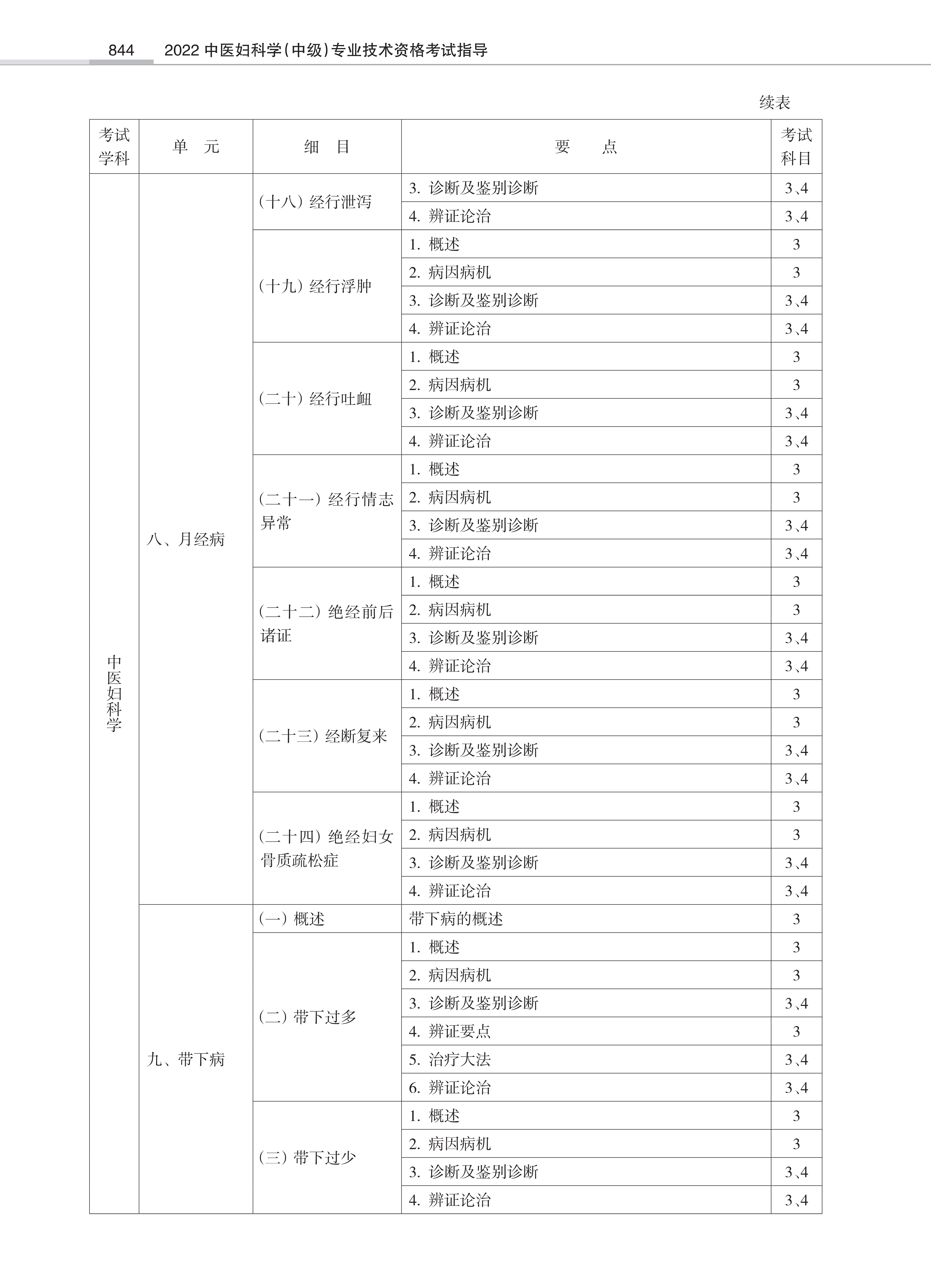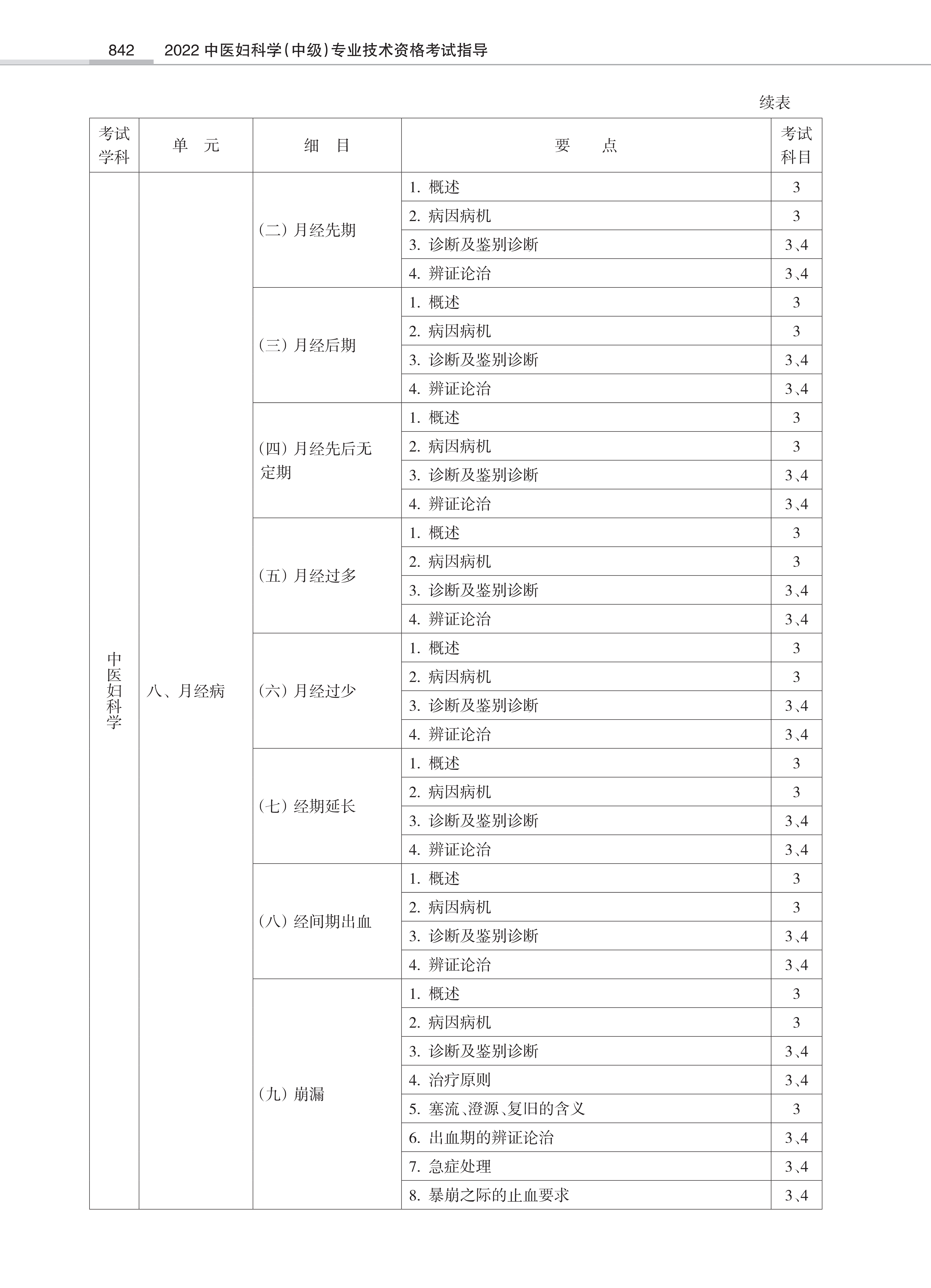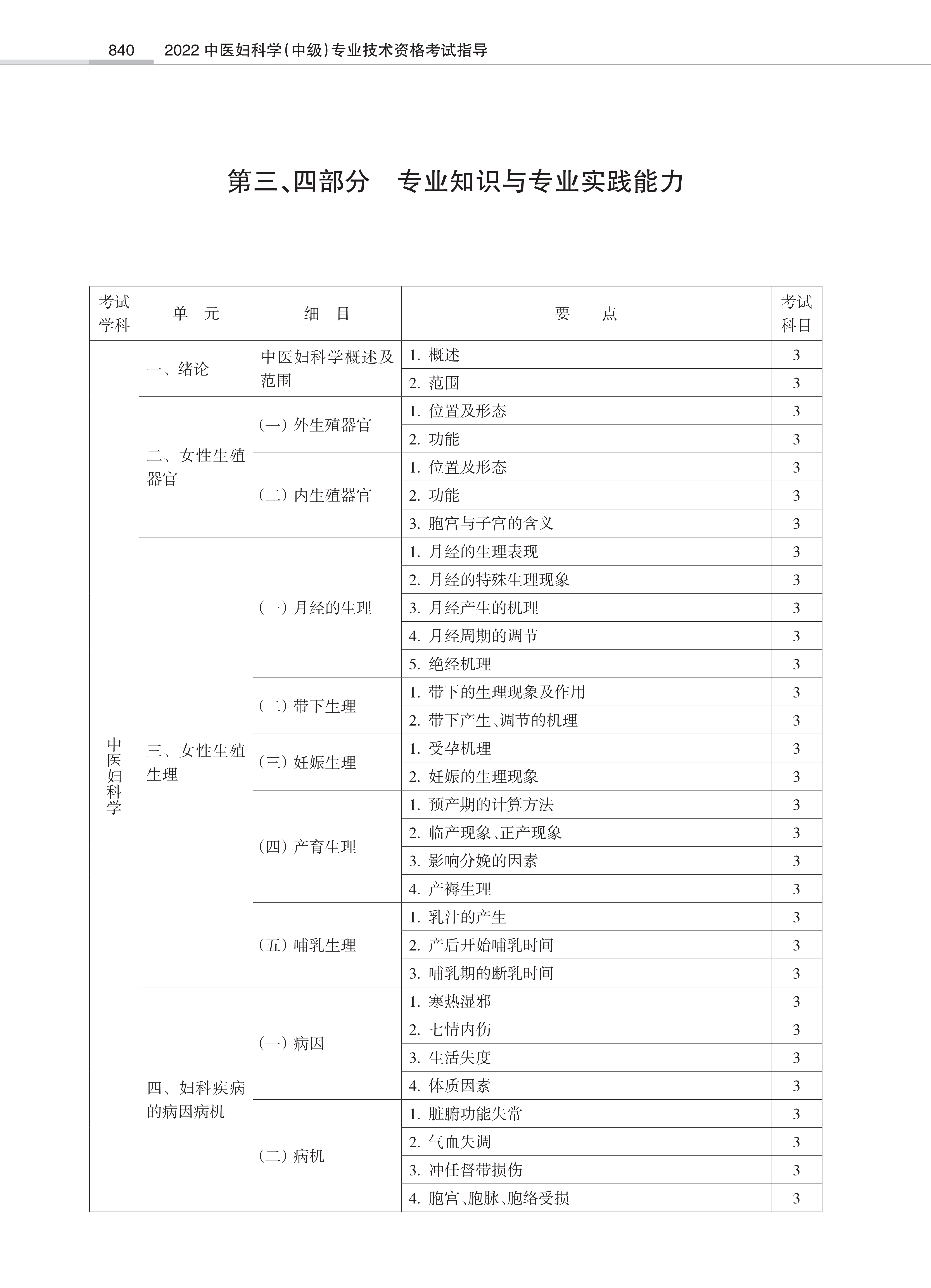 2022年卫生专业技术资格考试大纲-(中级)中医妇科学05-28