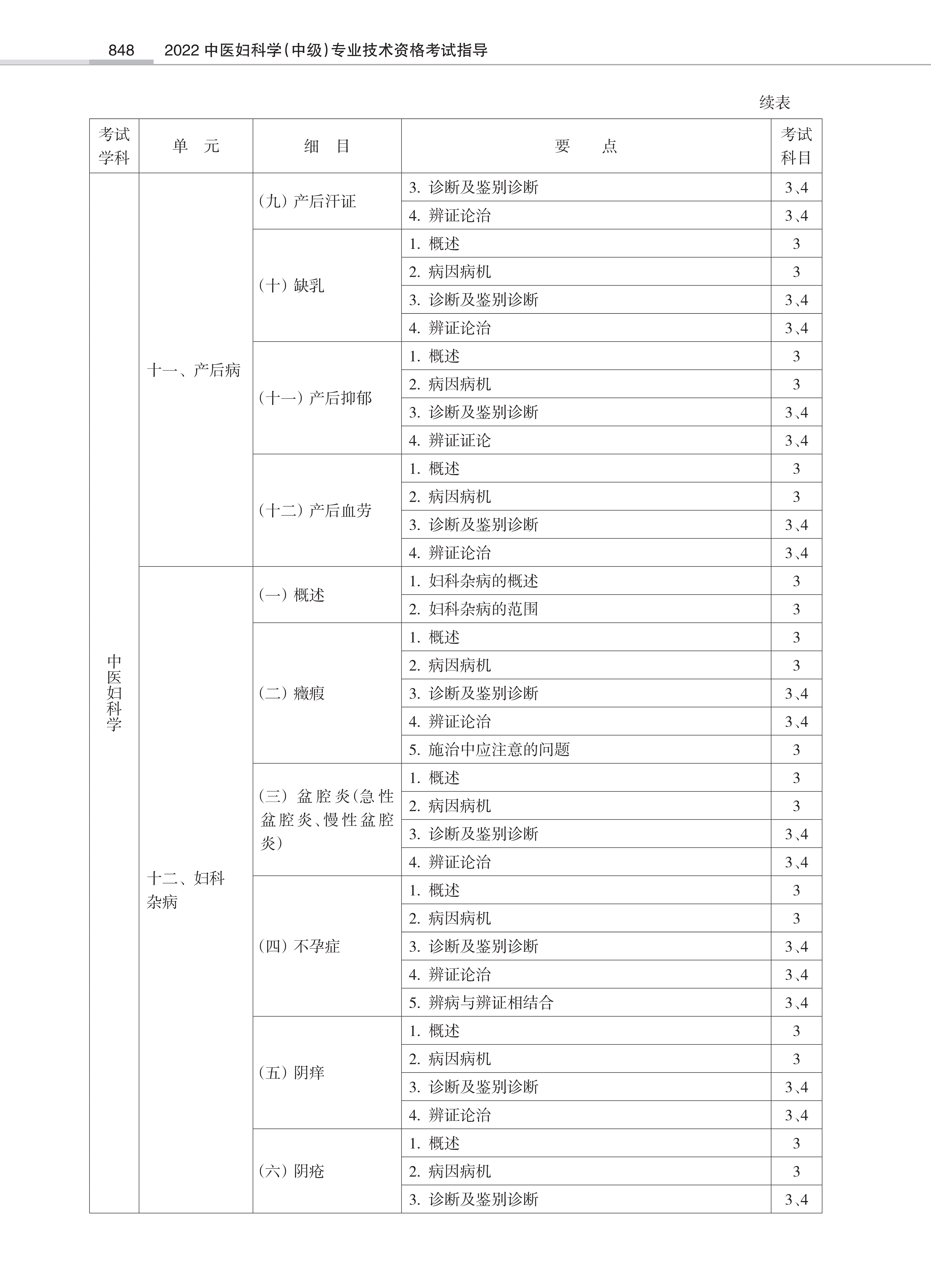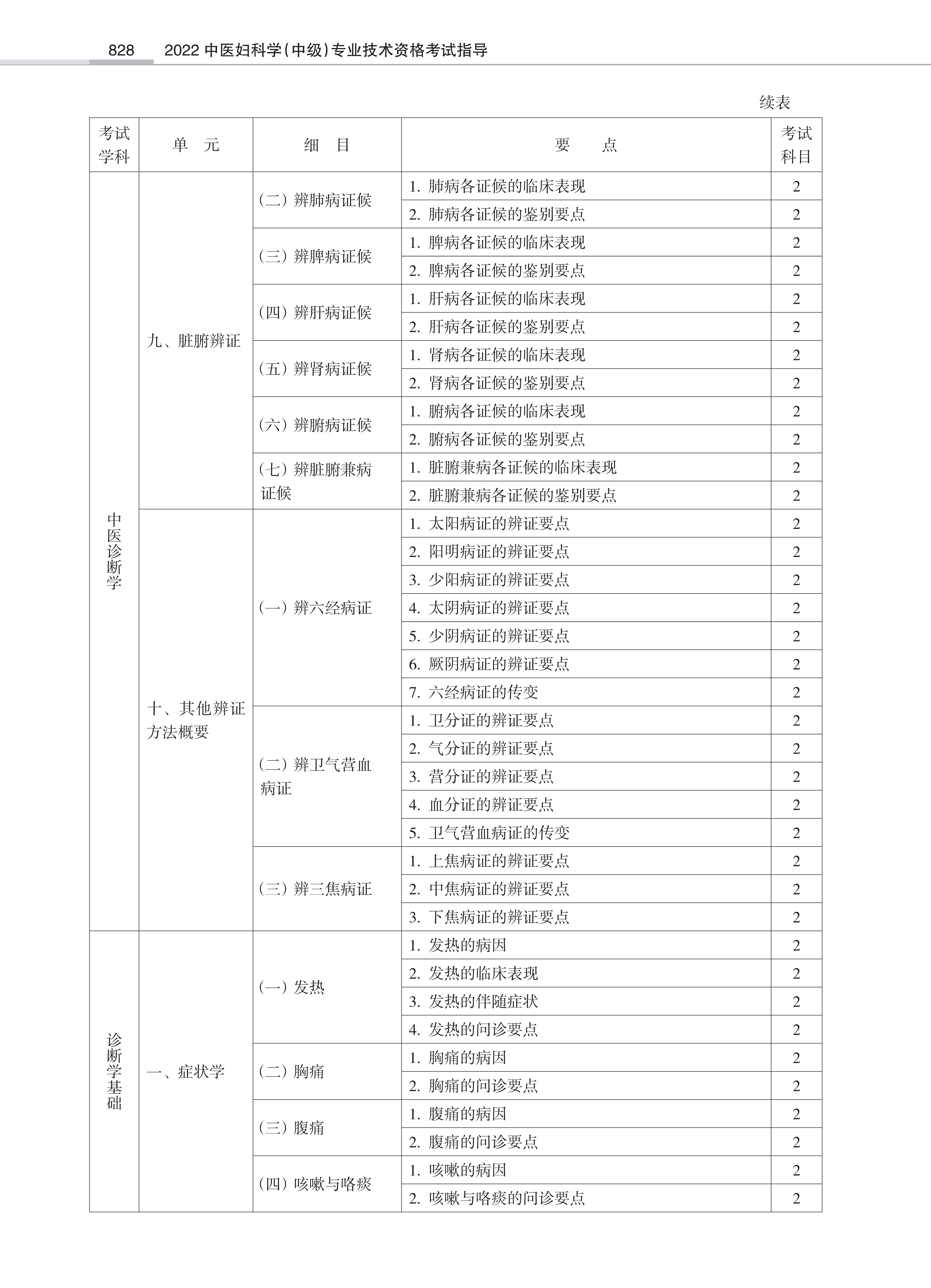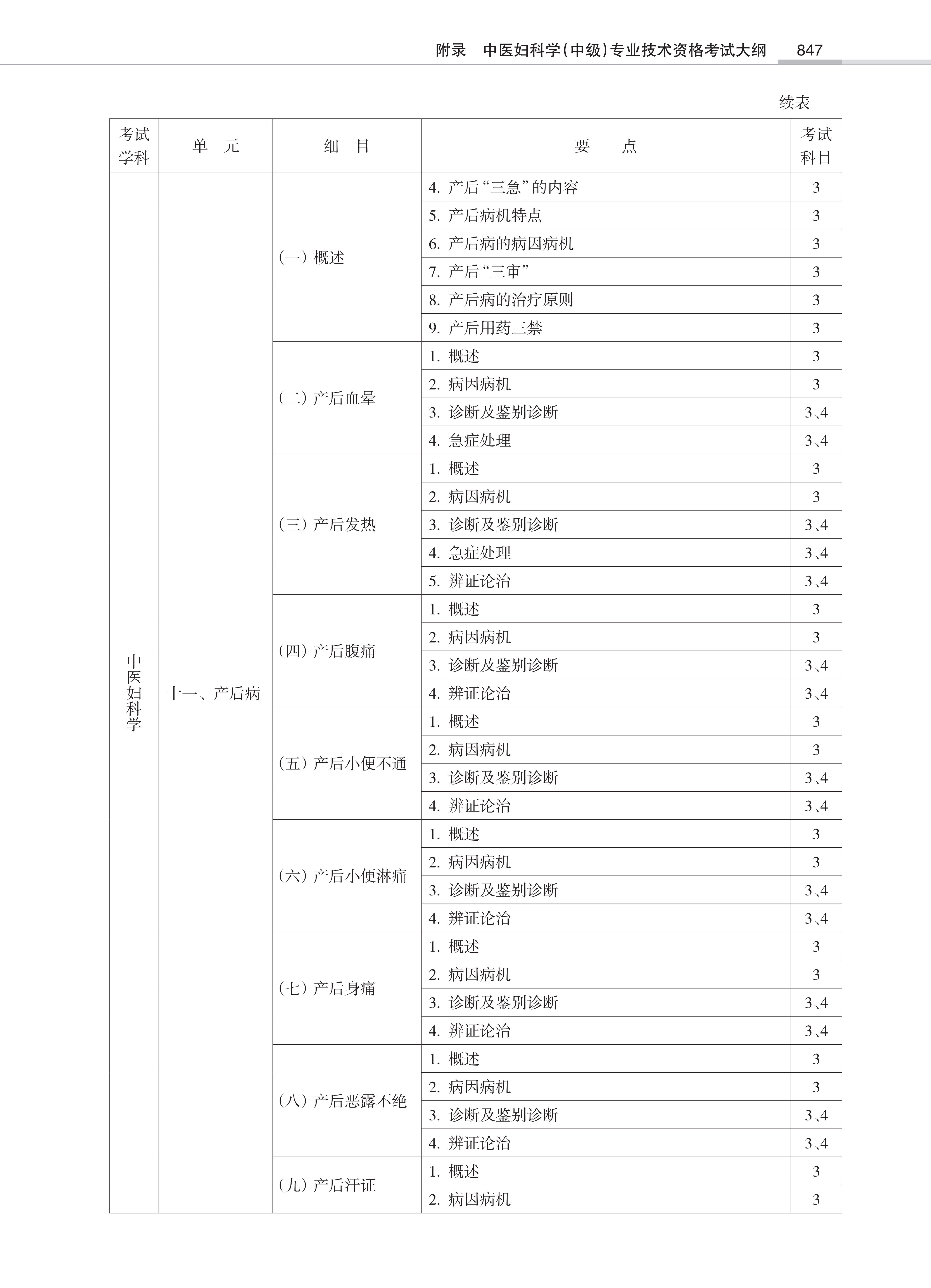 2022年卫生专业技术资格考试大纲-(中级)中医妇科学05-28