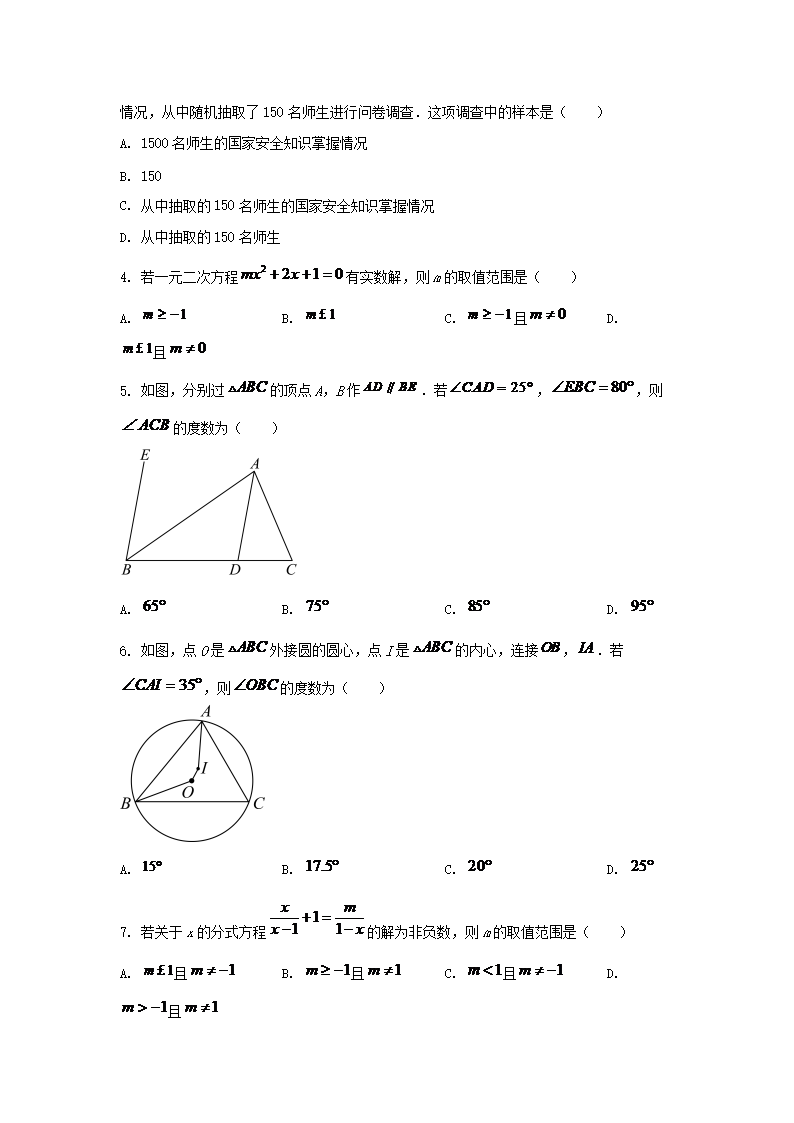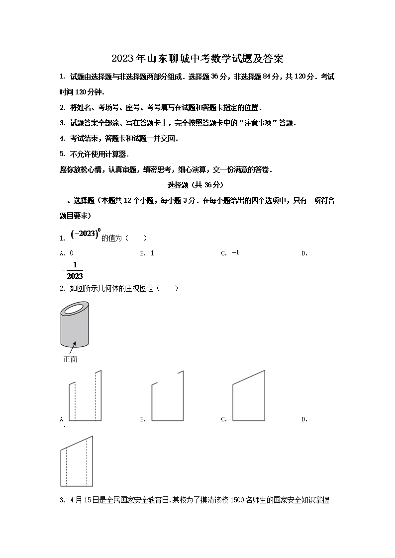 2023年山东聊城中考数学试题及答案(Word版)06-29