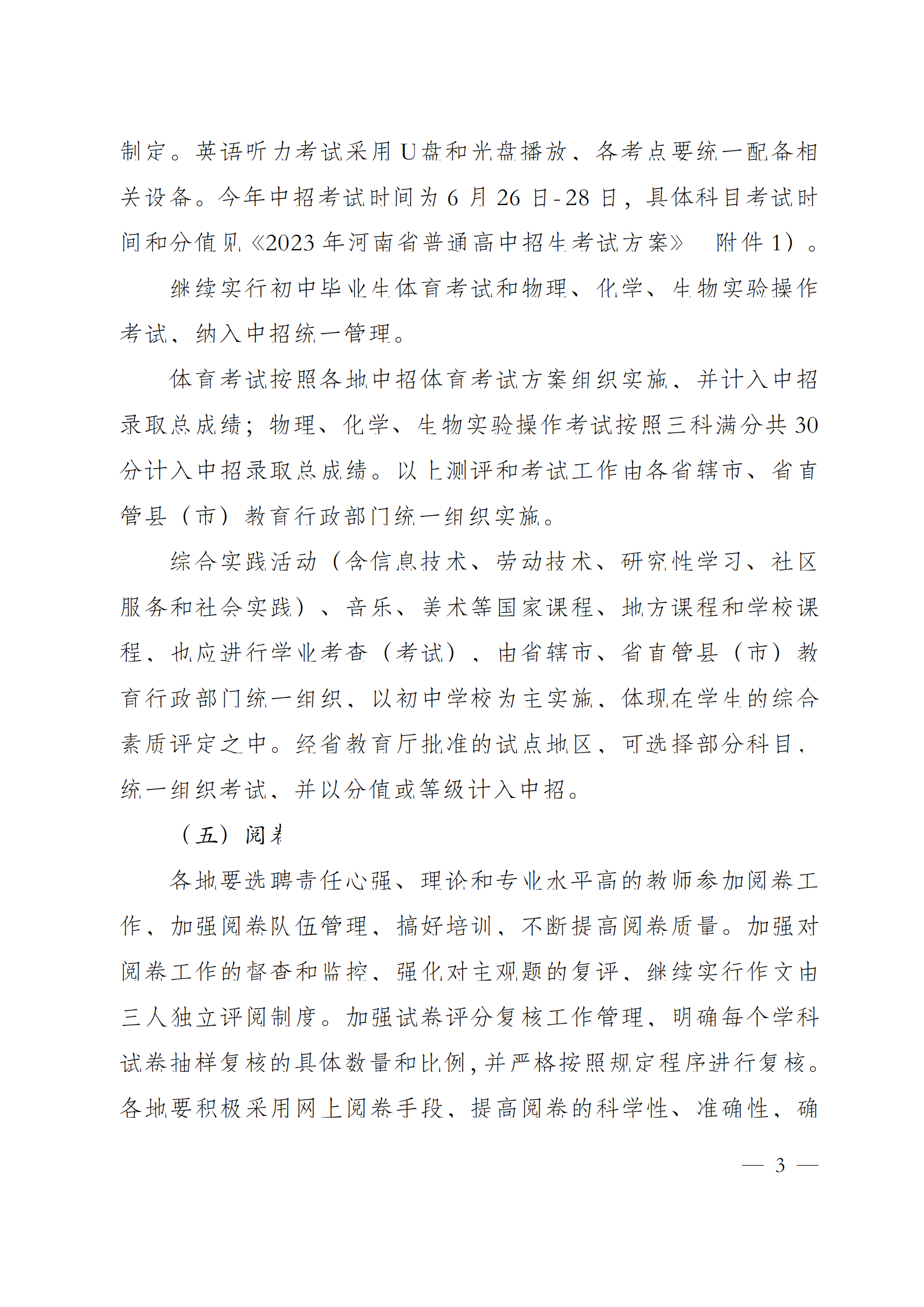 河南省教育厅关于做好2023年普通高中招生工作的通知[中招考试时间为6月26日-28日]05-08