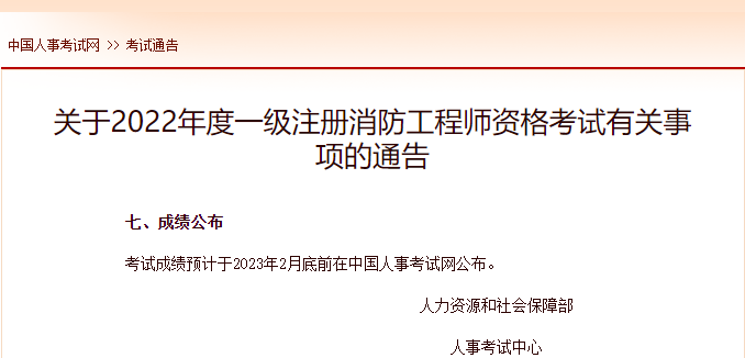 【#消防工程师# 导语】2022年一级消防工程师成绩查询时间是几月几号?一级消防工程师考试成绩由中国人事考试网发布,©文档大全网根据历年考试经验推断,一般考生成绩在考后2~3个月左右公布。敬请关注中国人事考试网!