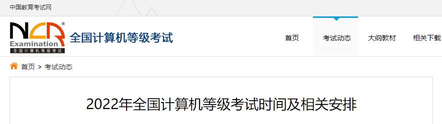 2022年全国计算机等级考试(NCRE)将举办四次考试,时间分别为3月26日至28日(第64次)、5月28日至29日(第65次)、9月24日至26日(第66次)及12月3日至4日(第67次)。其中3月和9月开考全部级别全部科目,5月和12月考试开考一、二级全部科目,各省级承办机构可根据实际情况决定是否开考5月和12月考试。如因疫情原因导致不能正常开考,我中心将另行通知。
