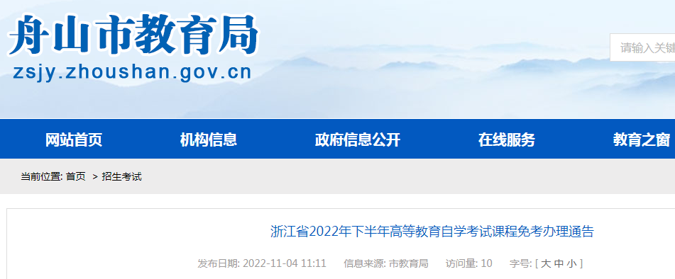 原文标题:浙江省2022年下半年高等教育自学考试课程免考办理通告