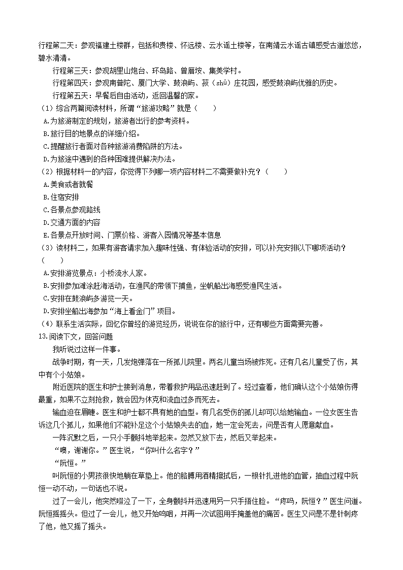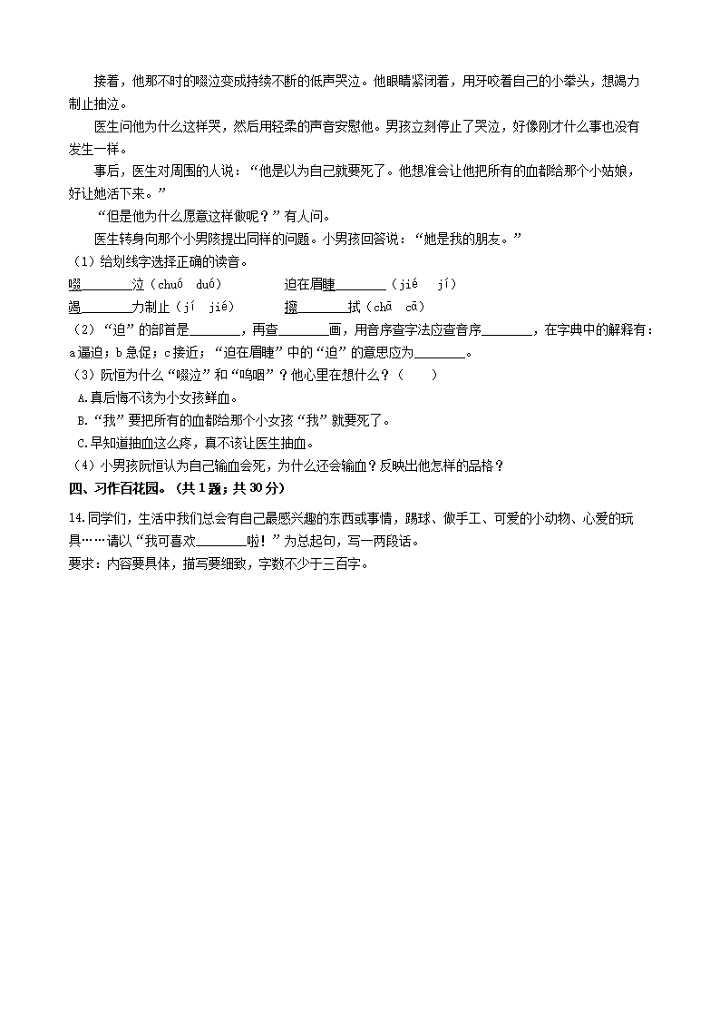 2021年北京市朝阳区小升初语文考试真题及答案(Word版)07-01