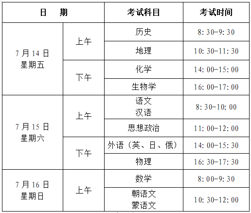 考试时间安排如下: