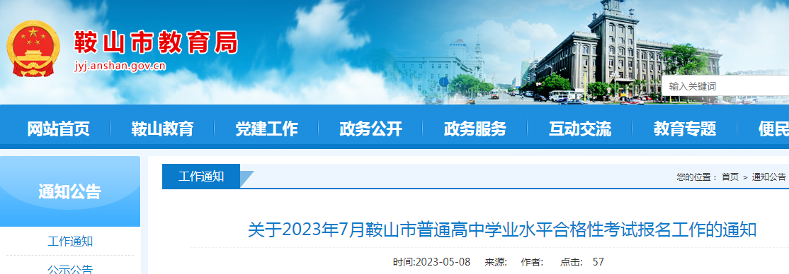 原文标题:关于2023年7月鞍山市普通高中学业水平合格性考试报名工作的通知