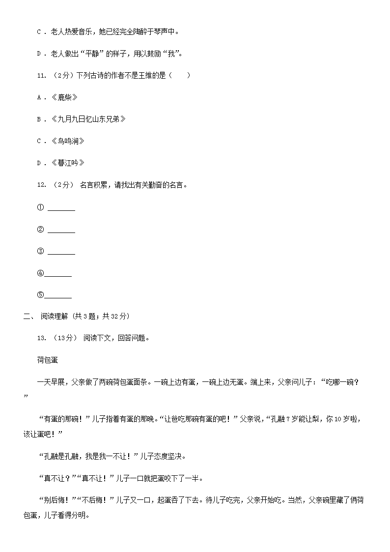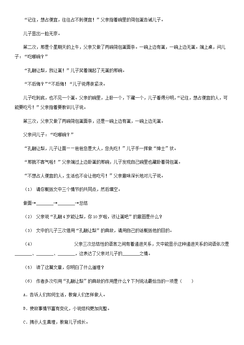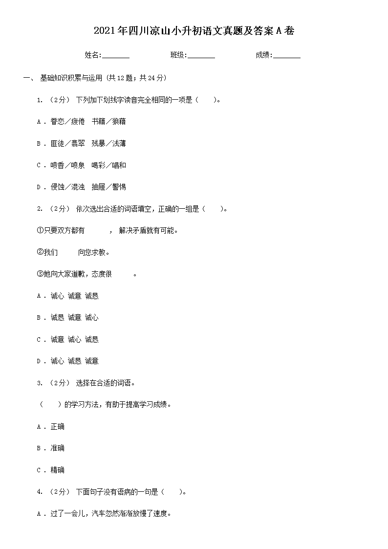 2021年四川凉山小升初语文真题及答案A卷(Word版)09-29