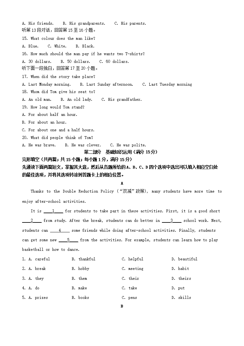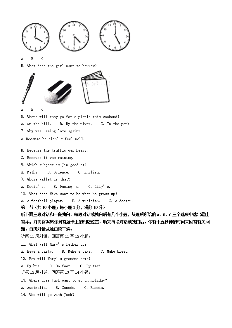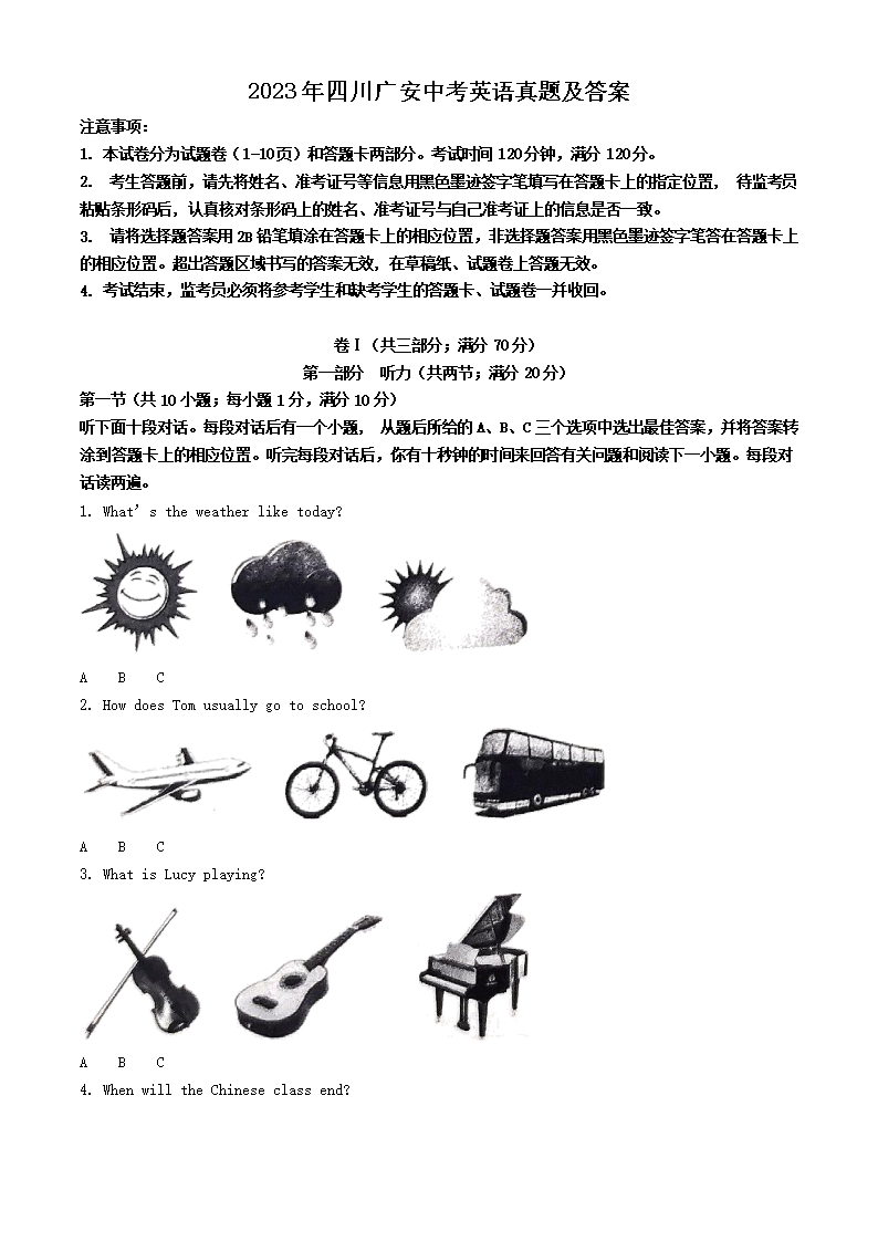 【文档预览】 文档大全网整理发布2023年四川广安中考英语真题及答案(Word版),前五页预览如下: