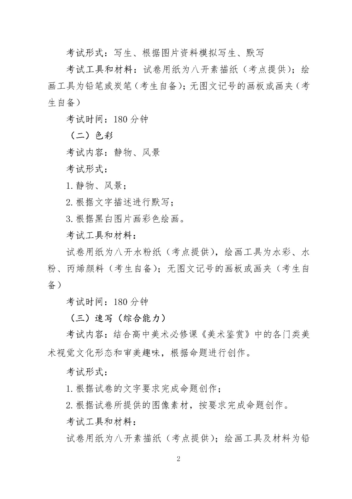 试卷用纸为八开素描纸(考点提供);绘画工具及材料为铅笔、炭笔、钢笔、签字笔、马克笔、蜡笔、彩色铅笔、水彩(考生自备);无图文记号的画板或画夹(考生自备)